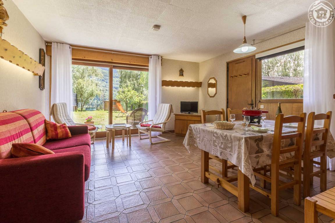 2 Gîtes im Haus des Besitzers. Gîte im Erdgeschoss: Studio (1 Rapido-Schlafsofa für 2 Personen), WLAN-Internetverbindung, kleines Kabine-Schlafzimmer (2 Einzel-Etagenbetten), Duschbad (Dusche mit WC), Zentralheizung, Terrasse mit Gartenmöbeln, geschlossenes Grundstück sportlich und blühte. Bettwäsche wird gestellt + Betten gemacht. Standseilbahn Les Arcs auf 900 m.