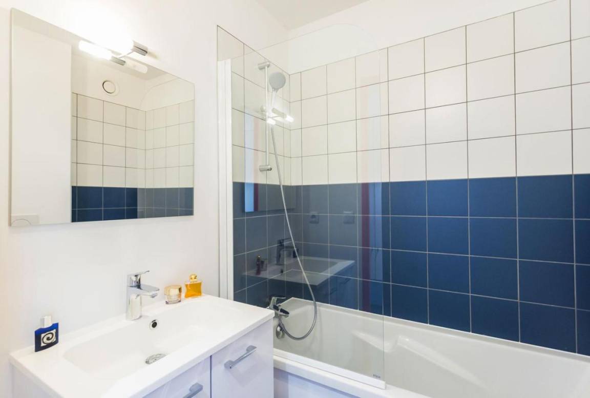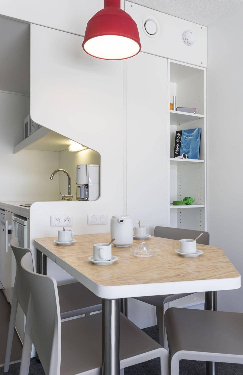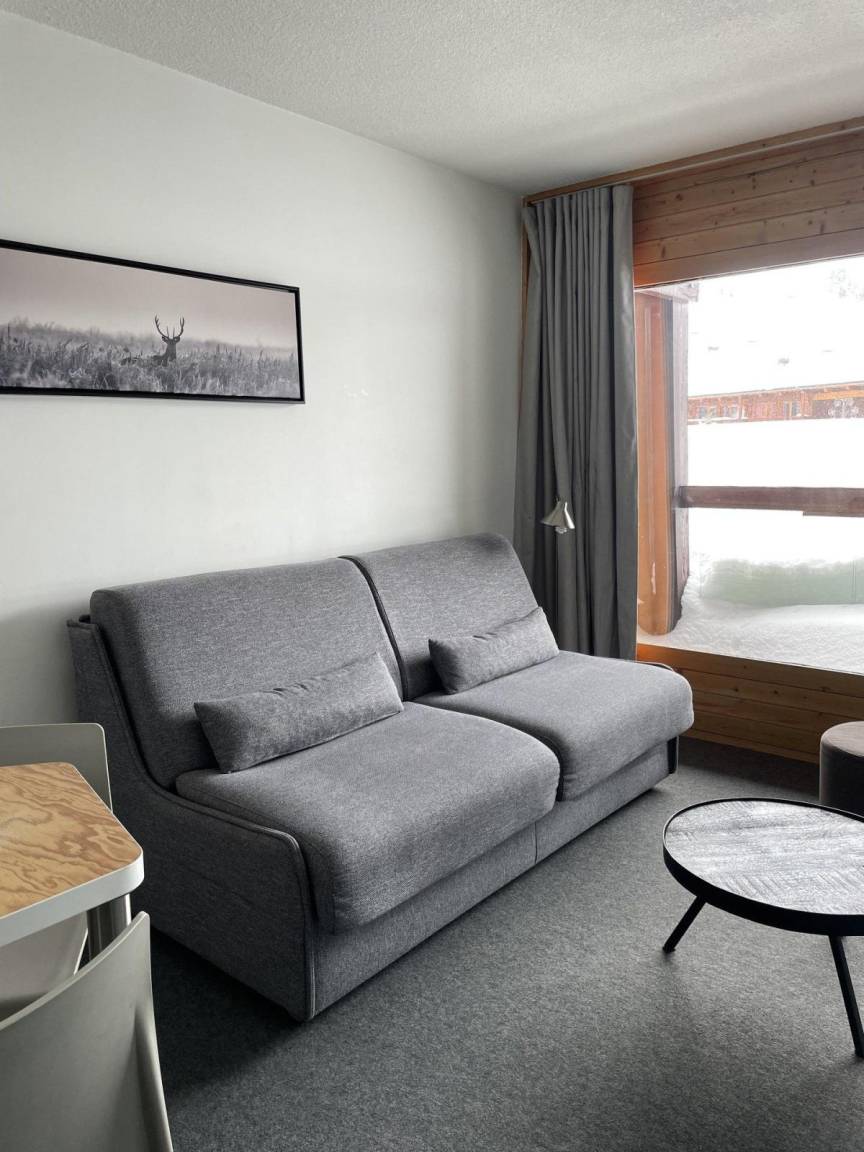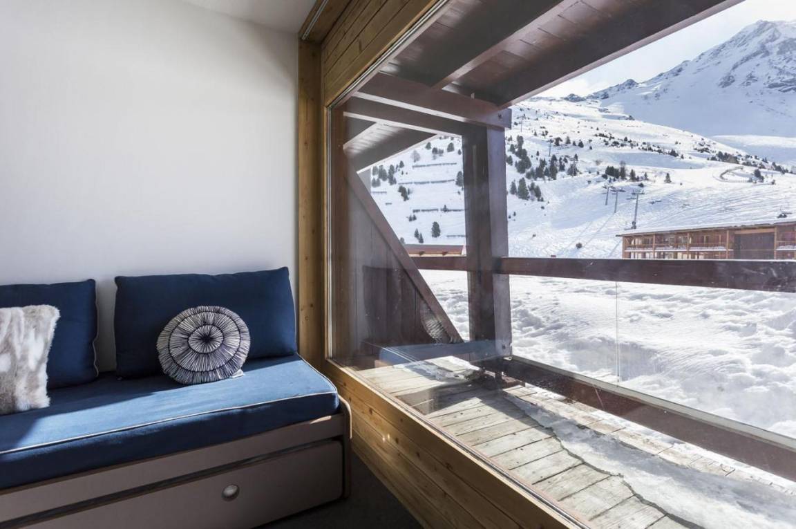 Fläche von ungefähr 26 m². 1te Etage. Orientierung : Süd-Ost. Wohnzimmer mit Klappschlafcouch (160), Schrank (pour les skis). offener Schlafbereich mit 2 Stockbetten (80). Kochnische mit Kaffeemaschine (filtre), kleiner Backofen mit Mikrowellenfunktion, Toaster, Geschirrspülmaschine, 2 Induktionsherdplatten, Kühlschrank. Badezimmer mit WC. Balkon. Die oberen Betten sind nicht für Kinder unter 6 Jahren geeignet.