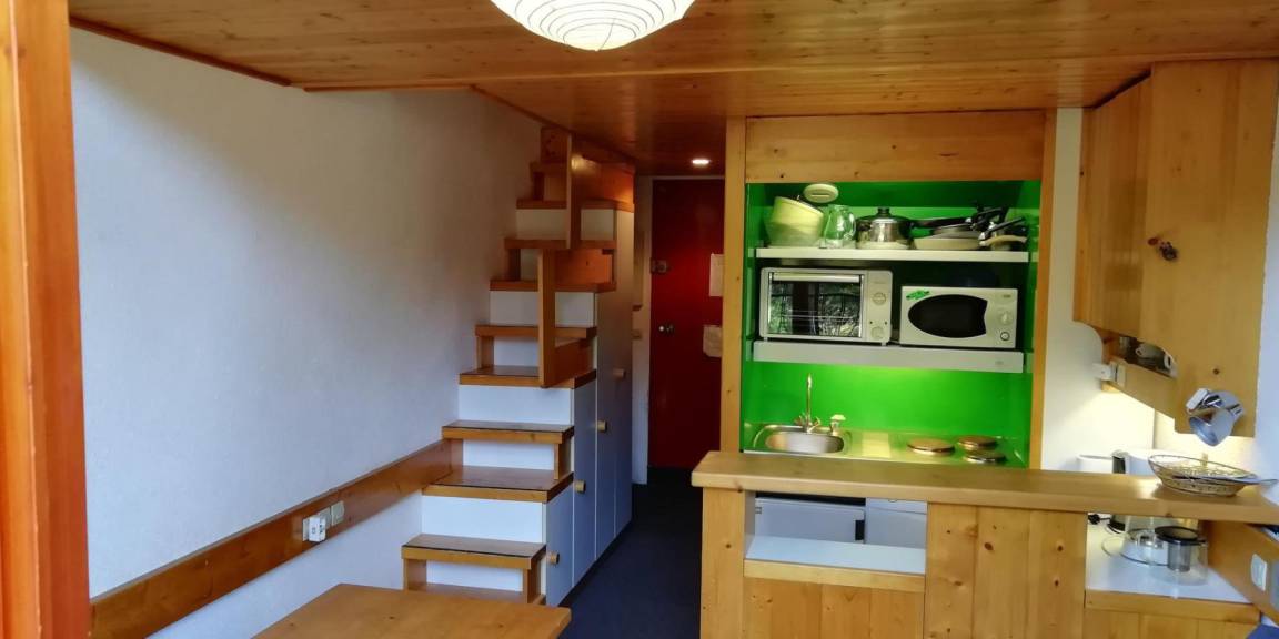 Fläche von ungefähr 33 m². 5te Etage. Orientierung : Nord, Nord-Ost, Ost. Niveau 0 : Wohnzimmer mit Klappschlafcouch für 1 Person (80). offener Schlafbereich mit 2 Stockbetten (80). Küche mit Wasserkocher, Kaffeemaschine, Backofen, Toaster, Geschirrspülmaschine, Mikrowellenherd, 2 elektronische Herdplatten, Kühlschrank. Badezimmer mit Badewanne, WC. 2 Balkone. Niveau 1 : Schlafzimmer mit Doppelbett (140). Die oberen Betten sind nicht für Kinder unter 6 Jahren geeignet.