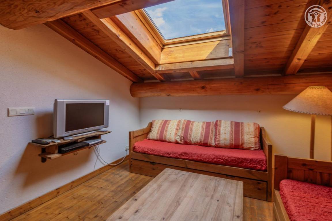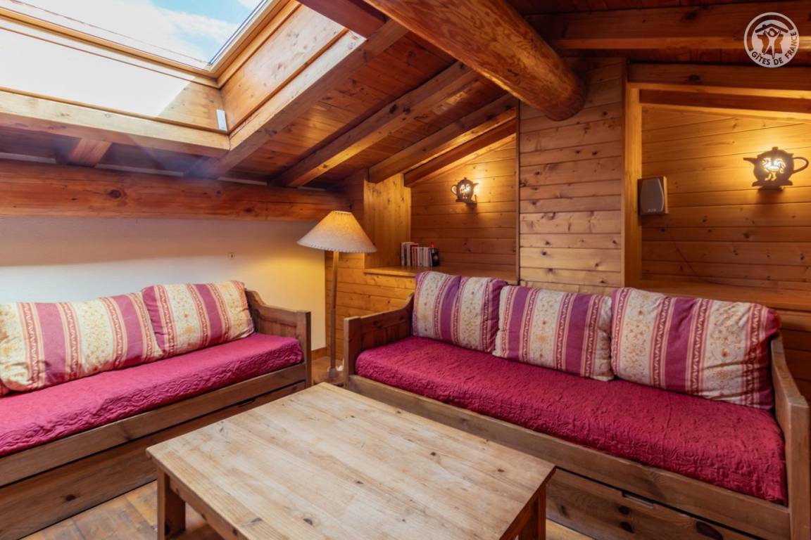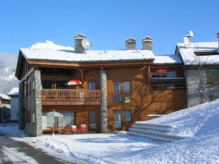 3 Unterkünfte im Haus. Auf 2 Ebenen. 1. Stock: Wohnzimmer mit Küchenbereich, WLAN, 1 Schlafzimmer (2 Einzelbetten), Duschbad (Dusche mit WC). 2. Stock: Wohnzimmer auf der Mezzanine mit Leerraum im Wohnzimmer (2 Einzelbetten), 2 Schlafzimmer (1 Doppelbett / 2 Einzelbetten), Badezimmer (Badewanne mit WC), Waschtrockner. Balkon-Terrasse. Ski-Standseilbahn für Les Arcs 100m. Sessellift La Rosière/La Thuile 11 km. Gesamtfläche: 77 m² inklusive Dachgeschoss.