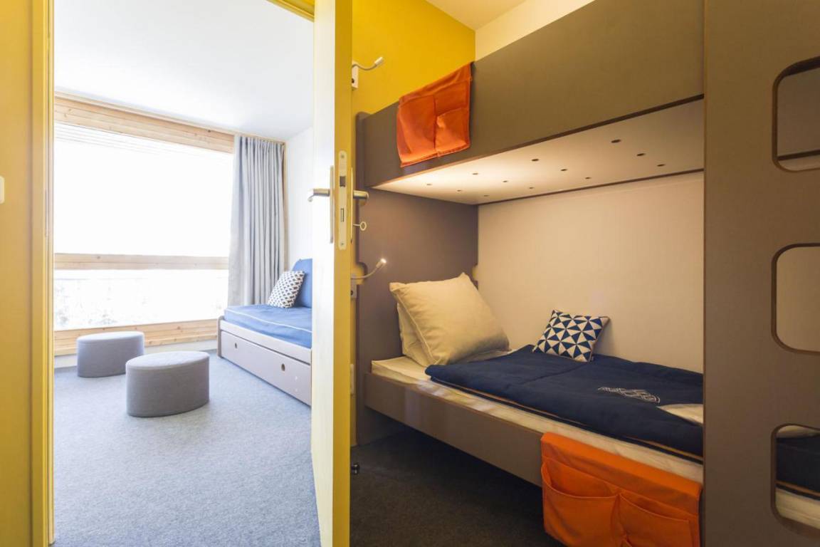 Fläche von ungefähr 54 m². 6te Etage. Orientierung : Süd, West. Wohnzimmer mit Ausziehschlafcouch für 2 Personen. offener Schlafbereich mit Doppelbett. offener Schlafbereich mit 4 Stockbetten. Kochnische mit Wasserkocher, Kaffeemaschine, Backofen, Toaster, Geschirrspülmaschine, Mikrowellenherd, 4 Herdplatten, Kühlschrank. Badezimmer mit Badewanne, WC. Waschräume mit Dusche, WC. Balkon. Die oberen Betten sind nicht für Kinder unter 6 Jahren geeignet.