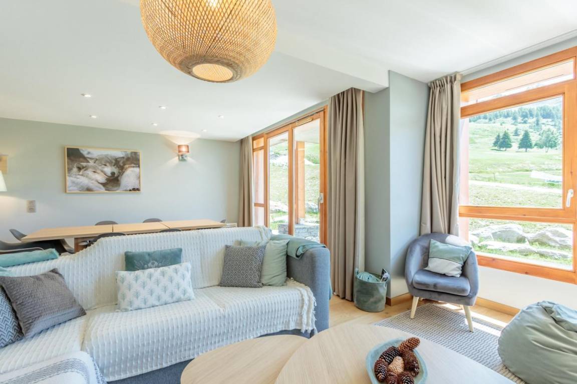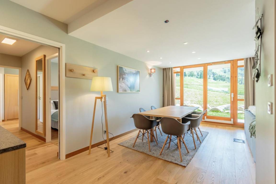 Fläche von ungefähr 85 m². 5te Etage. Orientierung : Süd. Blick skipisten. Wohnzimmer mit Hi-Fi, DVD-Spieler, Heizkörper. Schlafzimmer mit Stuhl, Doppelbett (140x190), Heizkörper. Schlafzimmer mit Stuhl, 2 Einzelbetten (90x190), Heizkörper. Schlafzimmer mit Badewanne, Stuhl, Doppelbett (140x190), Heizkörper, WC. Küche mit Kaffeemaschine, Backofen, kleiner Backofen mit Mikrowellenfunktion, Toaster, Induktionsherdplatten, Kühl-Gefrier-Kombination. Badezimmer. 2 Waschräume mit Dusche. Balkon mit Stuhl, Tisch.