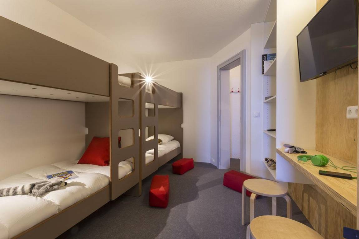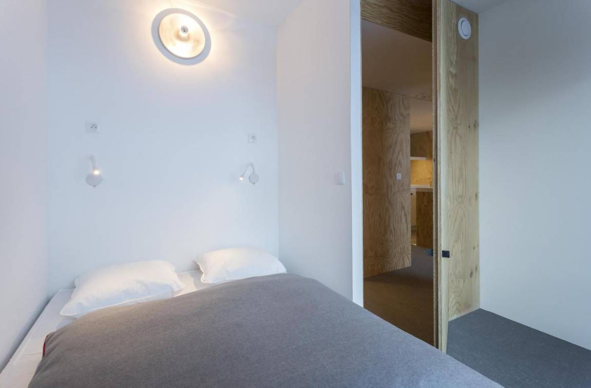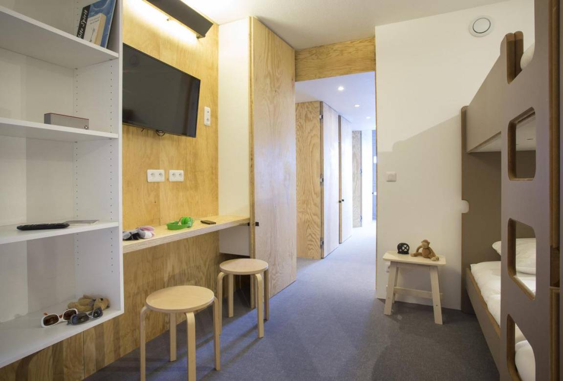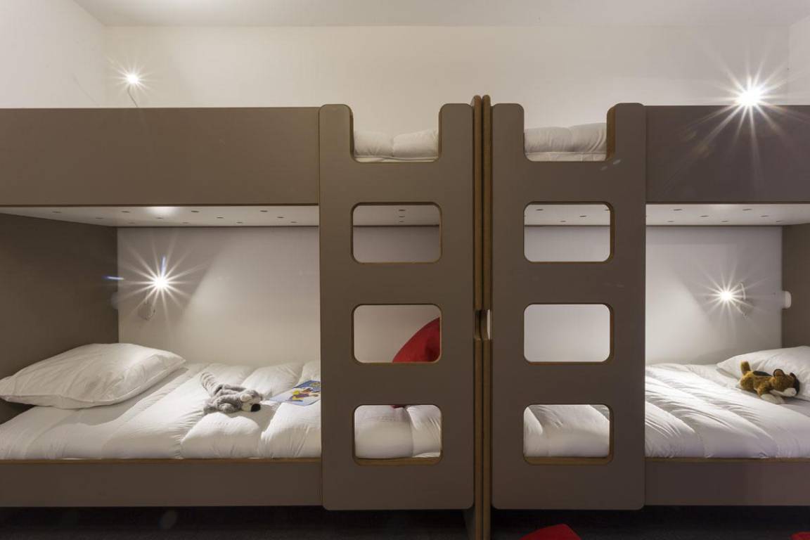 Fläche von ungefähr 61 m². 4te Etage. Orientierung : Süd-Ost. Wohnzimmer mit einfache Klappschlafcouch, Ausziehschlafcouch für 2 Personen. offener Schlafbereich mit 4 Stockbetten (80). offener Schlafbereich mit Doppelbett (140). Schlafzimmer mit , Doppelbett (140). Kochnische mit Wasserkocher, 2 Kaffeemaschinen (filtres et Nespresso), Backofen, Toaster, Geschirrspülmaschine, Mikrowellenherd, 3 Glaskeramikkochfelder, Kühlschrank. Waschräume mit Dusche, WC. Badezimmer mit WC. Balkon. Die oberen Betten sind nicht für Kinder unter 6 Jahren geeignet.