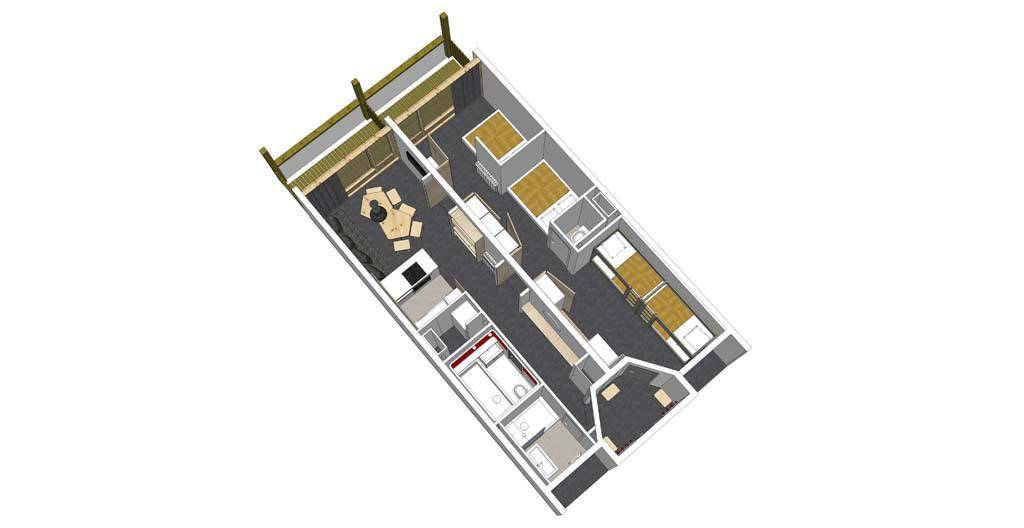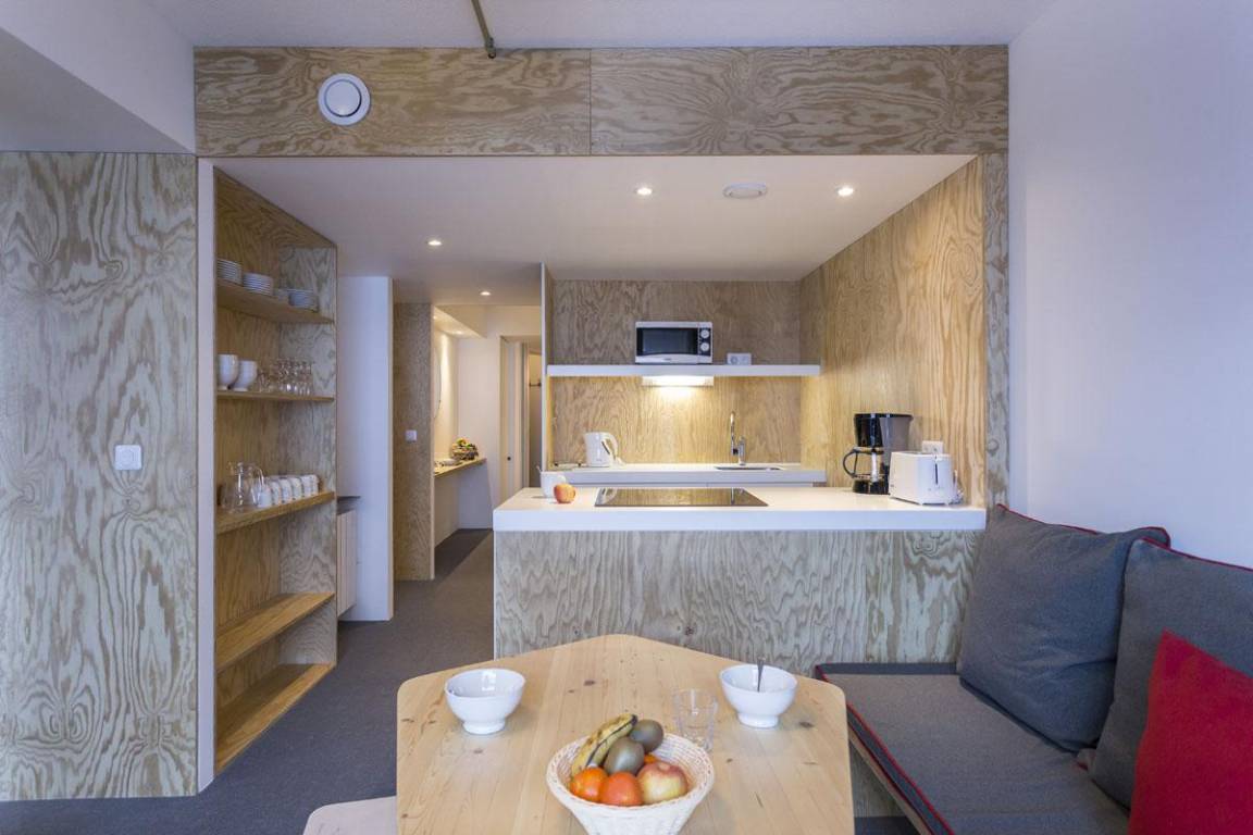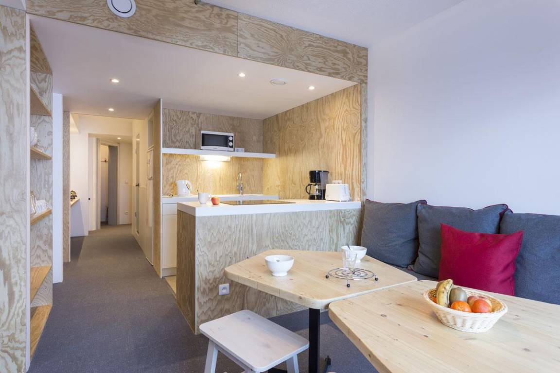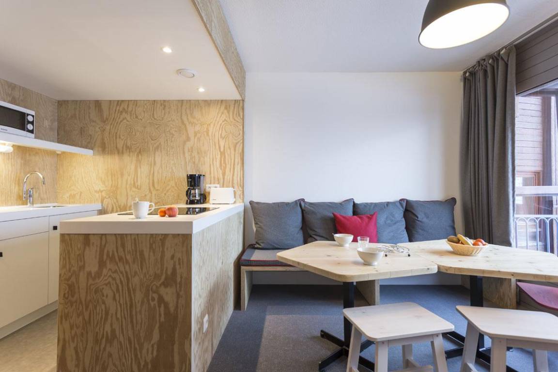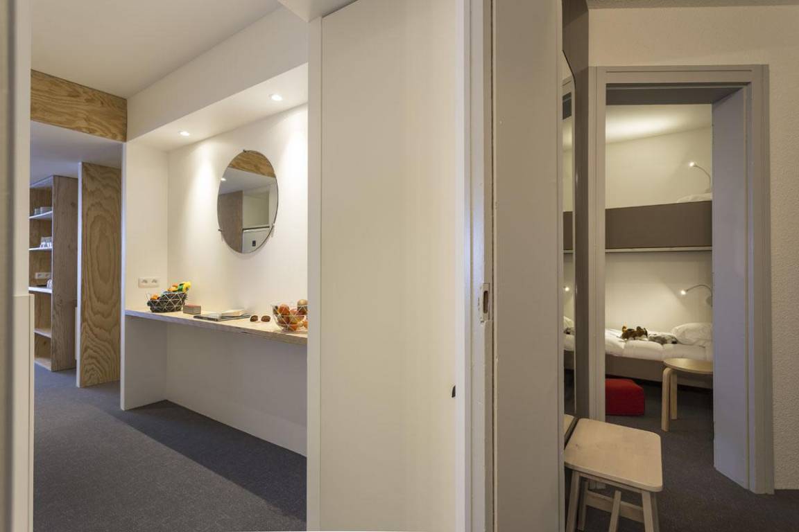 Fläche von ungefähr 61 m². 4te Etage. Orientierung : Süd-Ost. Wohnzimmer mit einfache Klappschlafcouch, Ausziehschlafcouch für 2 Personen. offener Schlafbereich mit 4 Stockbetten (80). offener Schlafbereich mit Doppelbett (140). Schlafzimmer mit , Doppelbett (140). Kochnische mit Wasserkocher, 2 Kaffeemaschinen (filtres et Nespresso), Backofen, Toaster, Geschirrspülmaschine, Mikrowellenherd, 3 Glaskeramikkochfelder, Kühlschrank. Waschräume mit Dusche, WC. Badezimmer mit WC. Balkon. Die oberen Betten sind nicht für Kinder unter 6 Jahren geeignet.