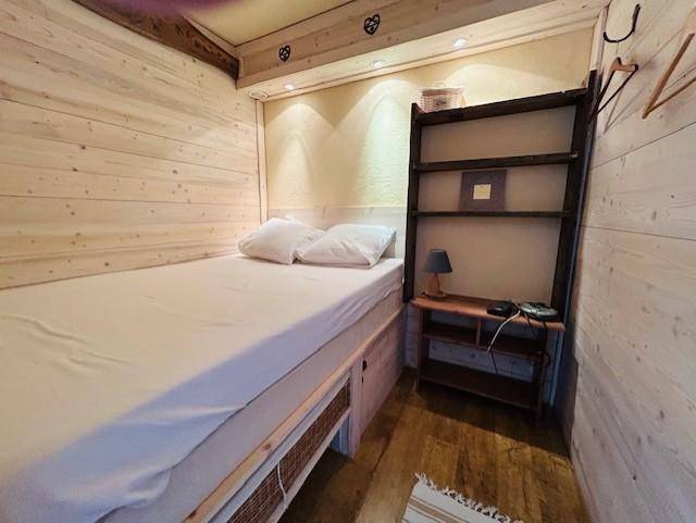 Fläche von ungefähr 56 m². 5te Etage. Orientierung : Süd, West. Blick skipisten. Diele. Wohnzimmer. 2 offene Schlafbereiche mit 2 Stockbetten (80). 2 offene Schlafbereiche mit Doppelbett (140). Kochnische mit Wasserkocher, 2 Kaffeemaschinen (filtre + Senséo), Backofen, Mikrowellengrill, Toaster, Geschirrspülmaschine, 4 Glaskeramikkochfelder, Kühlschrank. Waschräume mit WC. Badezimmer mit WC. Balkon. Die oberen Betten sind nicht für Kinder unter 6 Jahren geeignet.