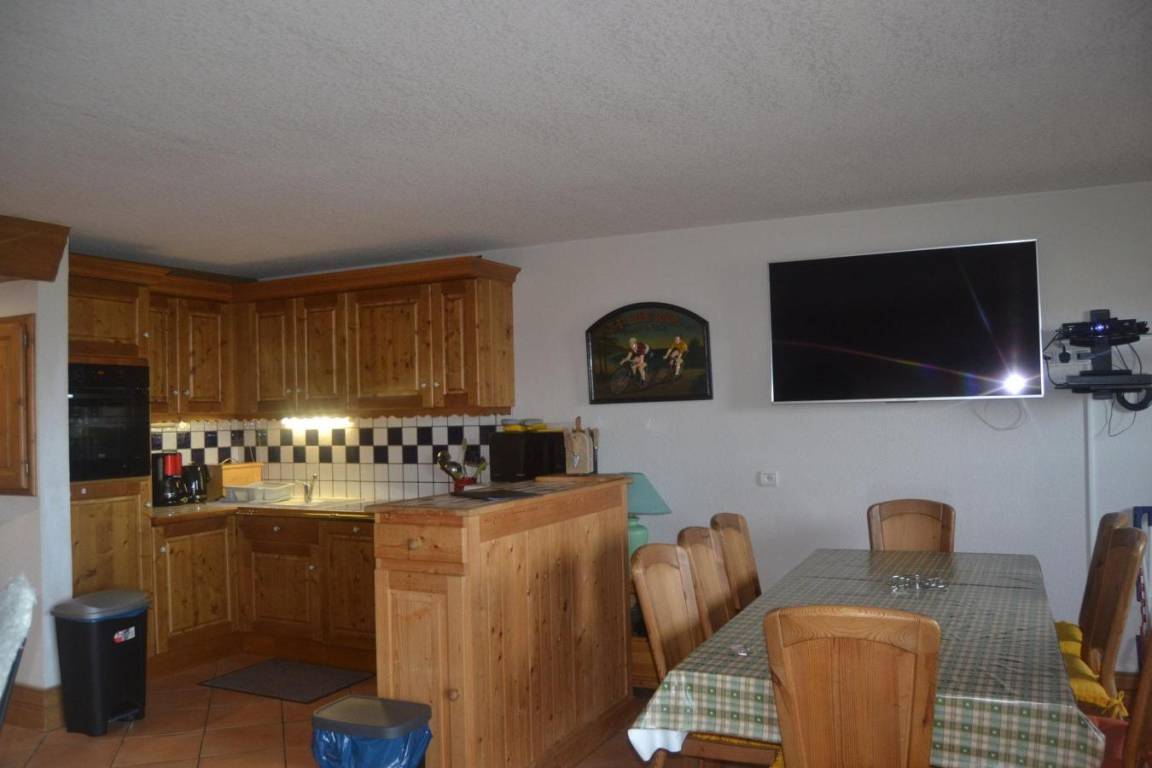 Fläche von ungefähr 65 m². 1te Etage. Orientierung : Süd, West. Blick skipisten und Tal. Niveau 0 : Wohnzimmer mit Klappschlafcouch. Kochnische mit Wasserkocher, Kaffeemaschine, Backofen, Toaster, Geschirrspülmaschine, Mikrowellenherd, Glaskeramikkochfelder, Kühlschrank. Waschräume mit Dusche, Waschmaschine. 2 separate WCs. 2 Balkone. Niveau -1 : Schlafzimmer mit Badewanne, Doppelbett. Schlafzimmer mit 2 Stockbetten. Schlafzimmer mit Doppelbett. Die oberen Betten sind nicht für Kinder unter 6 Jahren geeignet.
