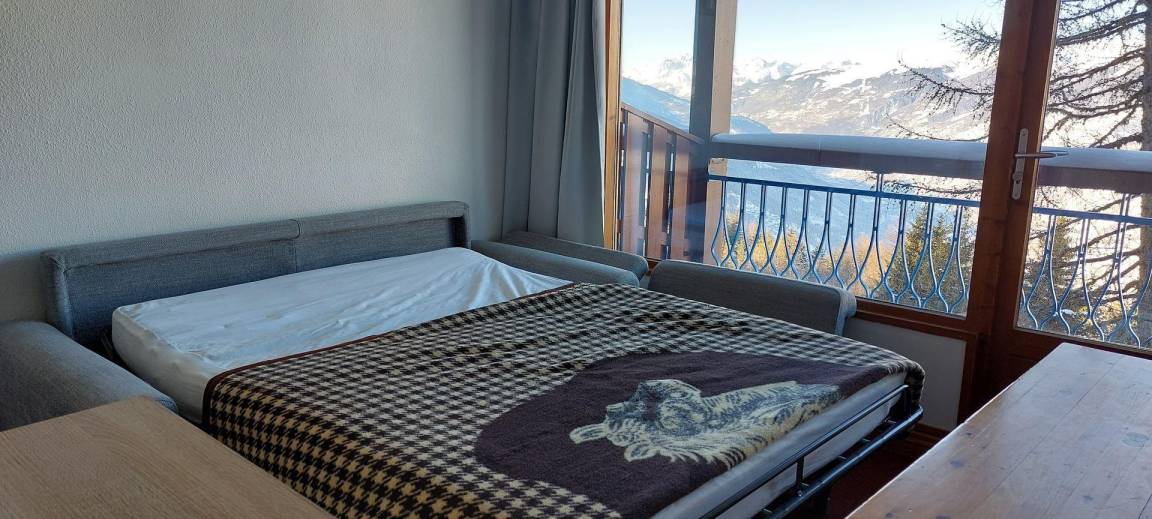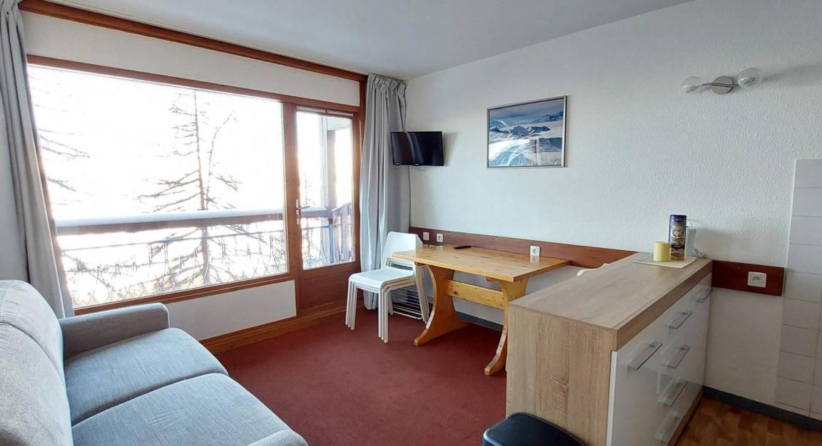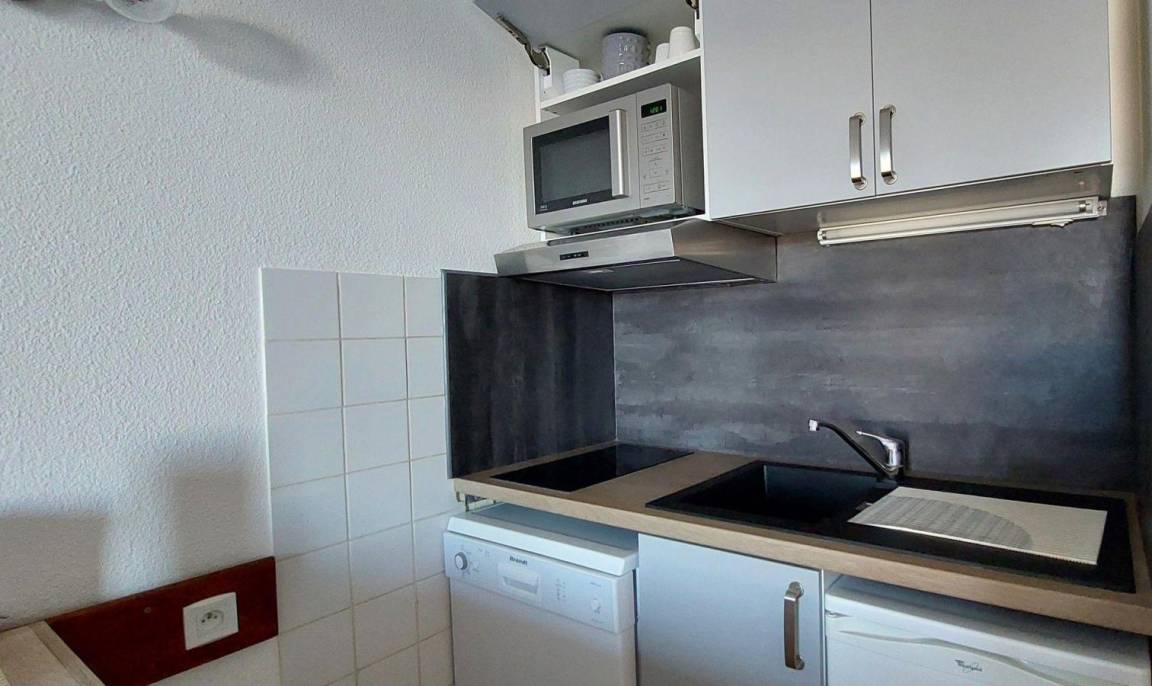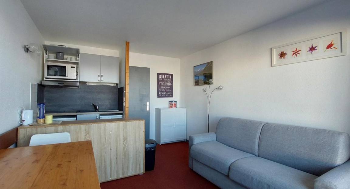Fläche von ungefähr 30 m². 5te Etage. Orientierung : West. Wohnzimmer mit Klappschlafcouch (140x190). Schlafzimmer mit 2 Stockbetten (80x190). Kochnische mit Wasserkocher, Kaffeemaschine, Backofen, kleiner Backofen mit Mikrowellenfunktion, Toaster, Geschirrspülmaschine, Induktionsherdplatten, Kühlschrank. separates WC. Badezimmer. Balkon. Die oberen Betten sind nicht für Kinder unter 6 Jahren geeignet.