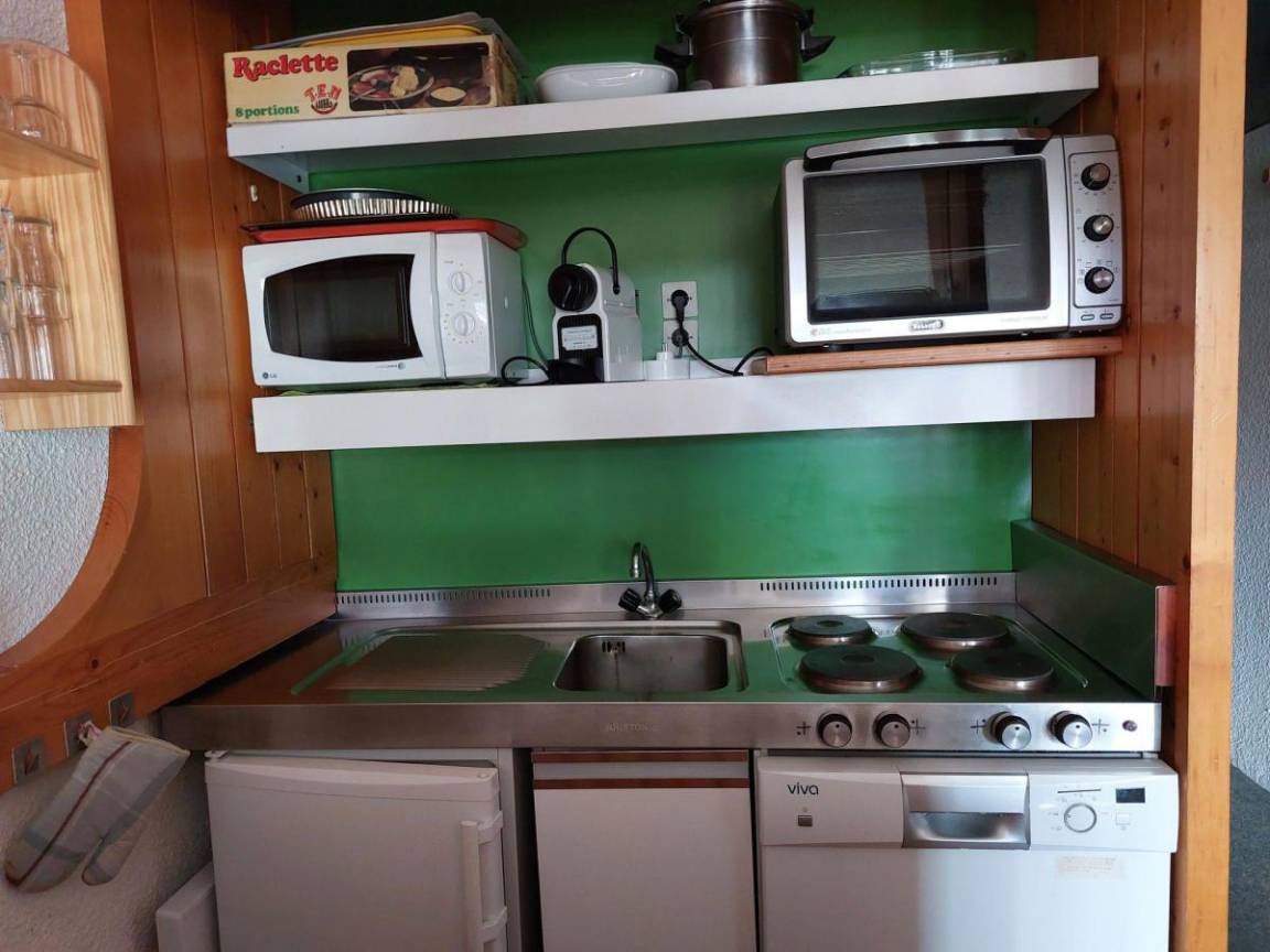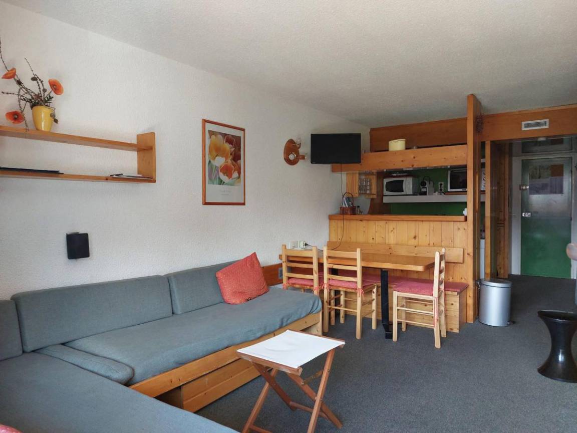 Wandern und Rafting sind vor Ort möglich und der Bahnhof Bourg-Saint-Maurice ist 15 km entfernt. Fläche von ungefähr 35 m². 13te Etage. Orientierung : Süd, West. Wohnzimmer mit 2 Einzelbetten. Schlafzimmer mit Einzelbett, 2 Stockbetten. Kochnische mit Backofen, Geschirrspülmaschine, Mikrowellenherd, 2 elektronische Herdplatten, Kühlschrank. Badezimmer mit Badewanne, separates WC. Balkon. Die oberen Betten sind nicht für Kinder unter 6 Jahren geeignet.