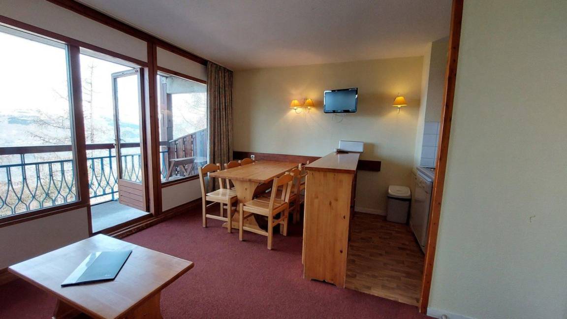 Fläche von ungefähr 40 m². 4te Etage. Orientierung : Süd, West. Blick tal. Wohnzimmer mit Ausziehschlafcouch für 2 Personen, Einzelbett. Schlafzimmer mit 2 Einzelbetten. Schlafzimmer mit 2 Stockbetten. Kochnische mit Wasserkocher, Kaffeemaschine, kleiner Backofen mit Mikrowellenfunktion, Toaster, Geschirrspülmaschine, Kühlschrank. Waschräume mit Dusche, WC. Badezimmer mit Badewanne. Balkon. Die oberen Betten sind nicht für Kinder unter 6 Jahren geeignet.