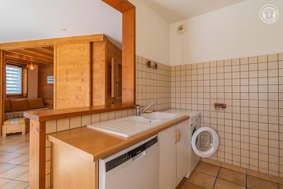 3 Unterkünfte im Haus. Erdgeschoss: Wohnzimmer-Küche mit Alkoven (2 Einzel-Ausziehbetten 90x200 cm), WLAN, 2 Schlafzimmer (1 Doppelbett 160x200 cm, 2 Einzelbetten 90x200 cm), Badezimmer (Badewanne), separates WC. Wäschetrockner. Terrasse. Ski-Standseilbahn für Les Arcs in 100 m Entfernung. Sessellift zwischen La Rosière und La Thuile, 11 km.