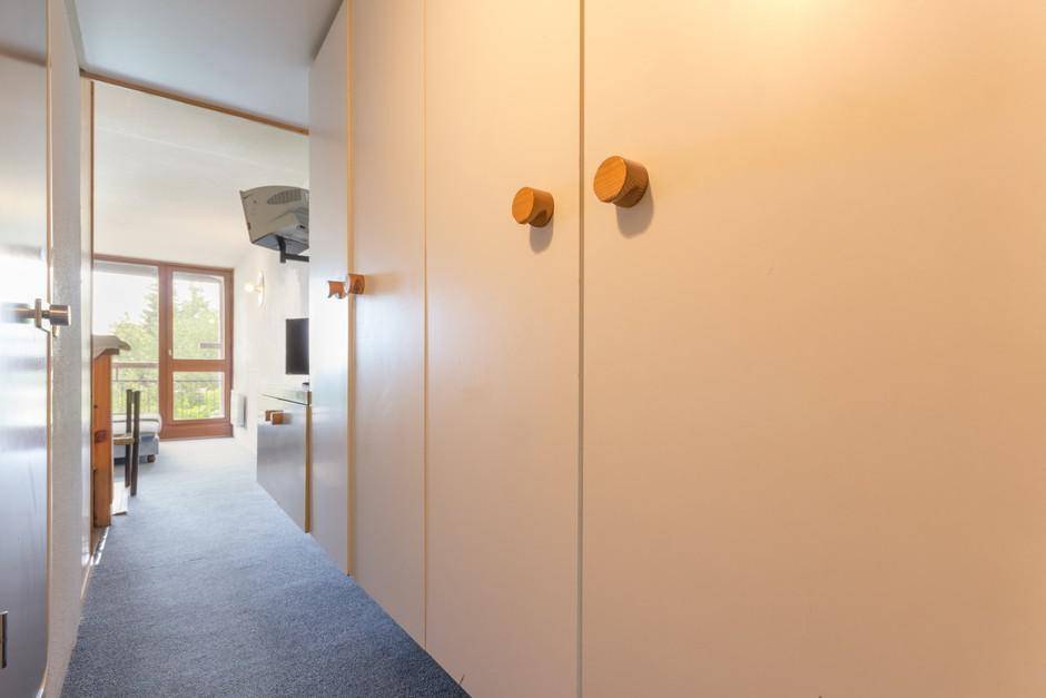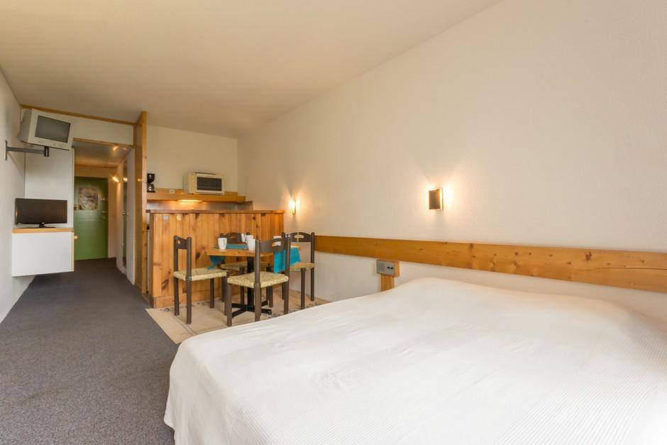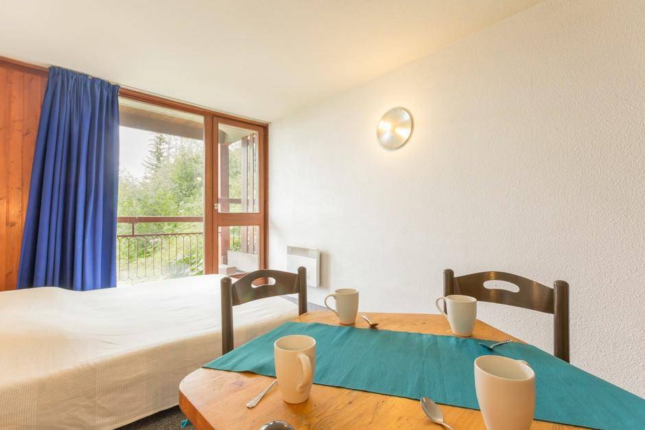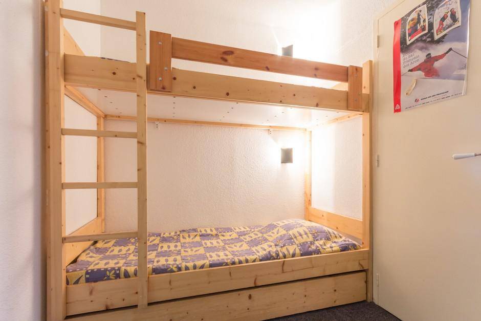 Fläche von ungefähr 28 m². 5te Etage. Orientierung : Nord. Blick berg (Mont-Blanc). Wohnzimmer mit 2 Einzelbetten (80), TV. offener Schlafbereich mit 2 Stockbetten (80), Ausziehbett (90). Kochnische mit Wasserkocher, Kaffeemaschine (filtre), Toaster, Geschirrspülmaschine, kleiner Backofen, elektronische Herdplatten, Kühlschrank. Badezimmer mit WC. Balkon. Die oberen Betten sind nicht für Kinder unter 6 Jahren geeignet.