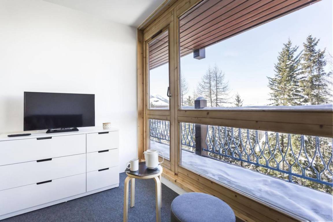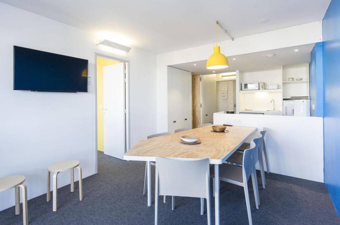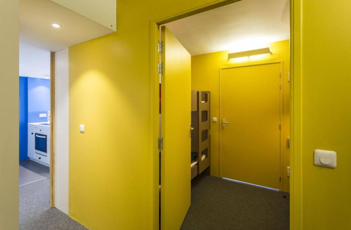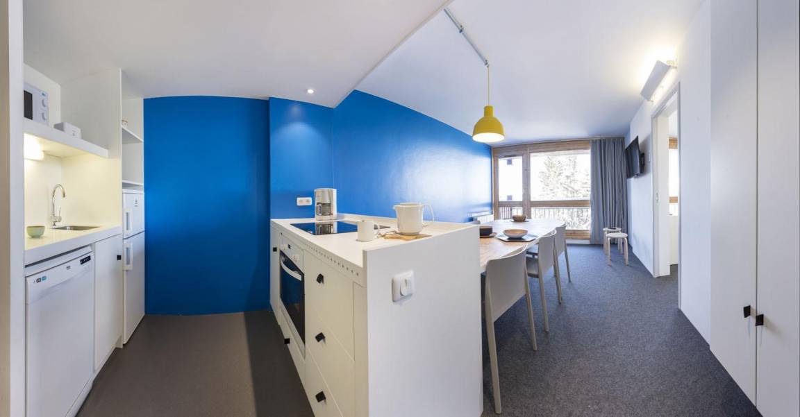 Fläche von ungefähr 54 m². 7te Etage. Orientierung : Süd, West. Wohnzimmer mit Klappschlafcouch (160). offener Schlafbereich mit 2 zwei Einzelbetten (80). offener Schlafbereich mit 4 Stockbetten. Kochnische mit Wasserkocher, 2 Kaffeemaschinen (filtre et Nespresso), Backofen, Toaster, Geschirrspülmaschine, Mikrowellenherd, Kühlschrank. Badezimmer mit Badewanne. Waschräume mit Dusche, WC. separates WC. Balkon. Die oberen Betten sind nicht für Kinder unter 6 Jahren geeignet.