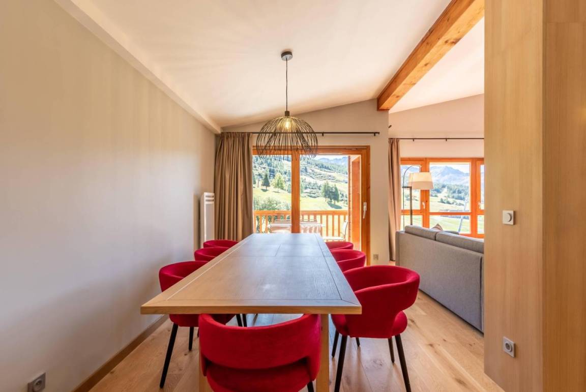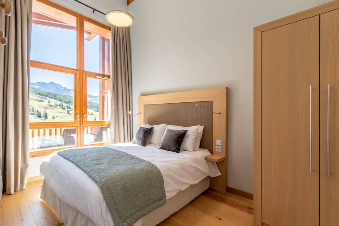 Fläche von ungefähr 105 m². 10te Etage. Orientierung : Süd. Blick skipisten. Diele. Wohnzimmer mit Hi-Fi, DVD-Spieler, Schwedenofen, Heizkörper. 2 Schlafzimmer mit Doppelbett (160), , WC. Schlafzimmer mit 2 zwei Einzelbetten. Schlafzimmer mit Doppelbett (160). Küche mit Kaffeemaschine, Backofen, kleiner Backofen mit Mikrowellenfunktion, Toaster, Induktionsherdplatten, Kühl-Gefrier-Kombination. Badezimmer. Waschküche mit Waschmaschine, Wäschetrockner. separates WC. 3 Balkone.