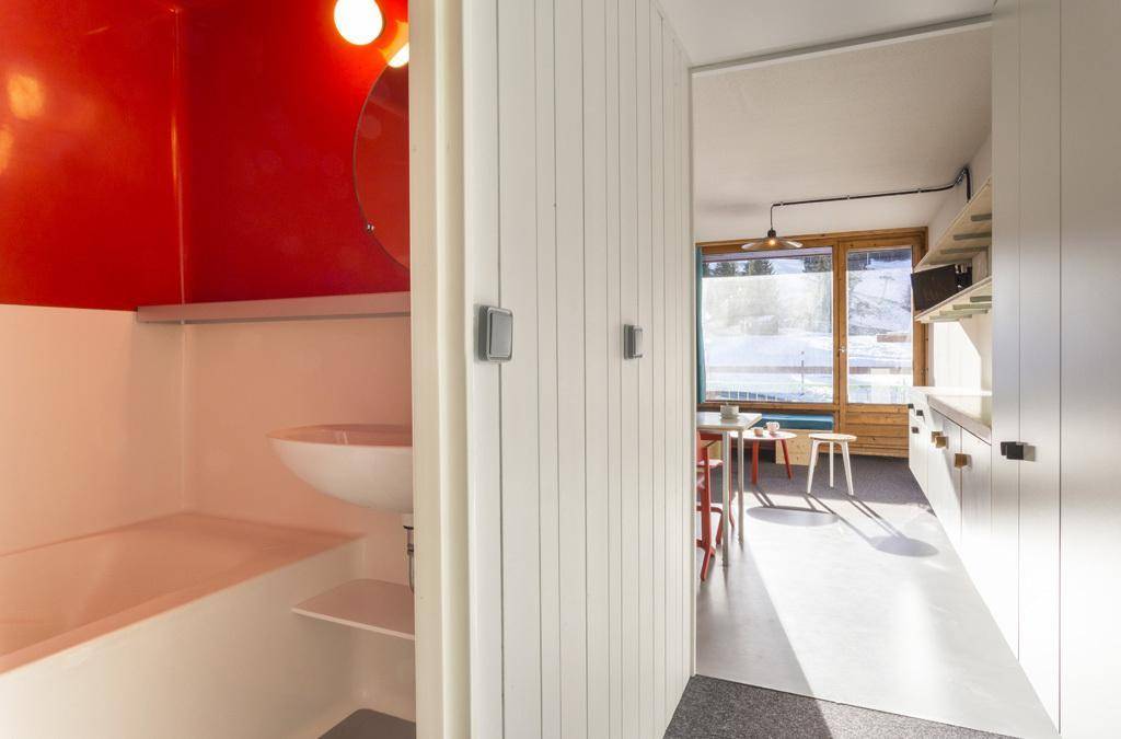 Fläche von ungefähr 27 m². 9te Etage. Orientierung : Süd. Wohnzimmer mit Ausziehschlafcouch für 2 Personen (2x80). offener Schlafbereich mit Ausziehschlafcouch für 2 Personen, 2 Stockbetten. Kochnische mit Wasserkocher, Kaffeemaschine (filtre), kleiner Backofen mit Mikrowellenfunktion, Toaster, Geschirrspülmaschine, 2 Herdplatten, Kühlschrank. Badezimmer mit Badewanne, WC. Balkon. Die oberen Betten sind nicht für Kinder unter 6 Jahren geeignet.