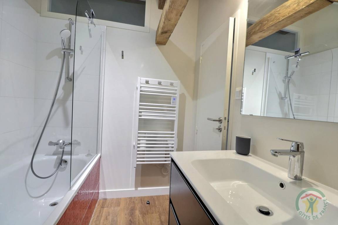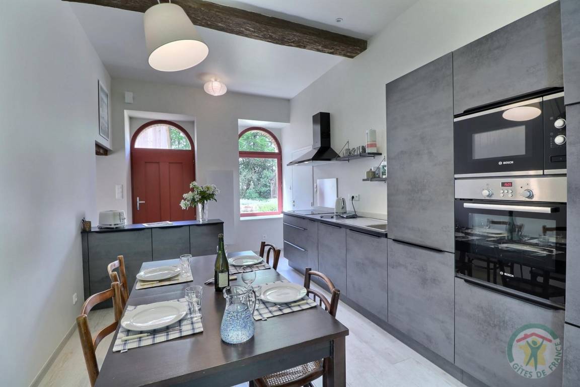 „Très beau gîte avec 1 interieur sobre mais fonctionnel. Matériaux de très bonne qualité. Très nombreux ustensiles et petits electro-menagers. Trés bons couchages. Entourés de verdure, la terrasse privative plein sud est un havre de paix où la nature fait valoir ses droits. A recommander si se ressourcer fait partie de vos priorités.“