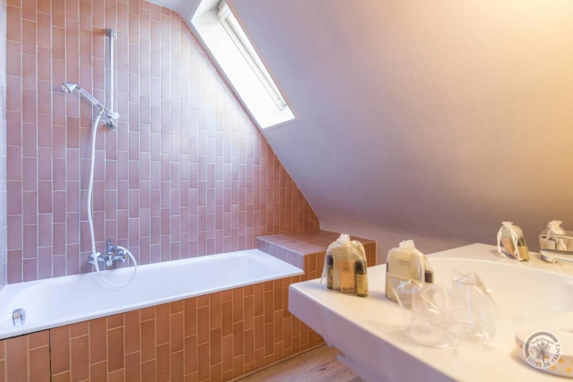 „Accueil chaleureux et attentionné par la propriétaire des lieux. Environnement bocager dans un très grand jardin avec visite d'un chevreuil et d'un lièvre. Belle prestation globale. A recommander !“