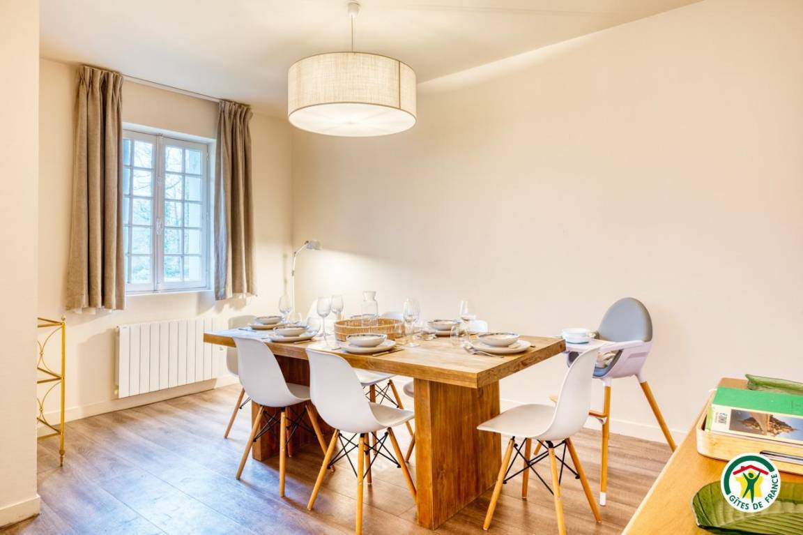 „L'arrivée au gîte s'est fait de manière souple avec une boite à clé. Le gîte, dans l'enceinte de la grande propriété du château, est bien situé et bien rénové. La literie est très bonne et les lits doubles sont bien larges. La cuisine est bien équipée et la grande table bien pratique. Il manquerait juste le double vitrage pour que le confort soit parfait!“