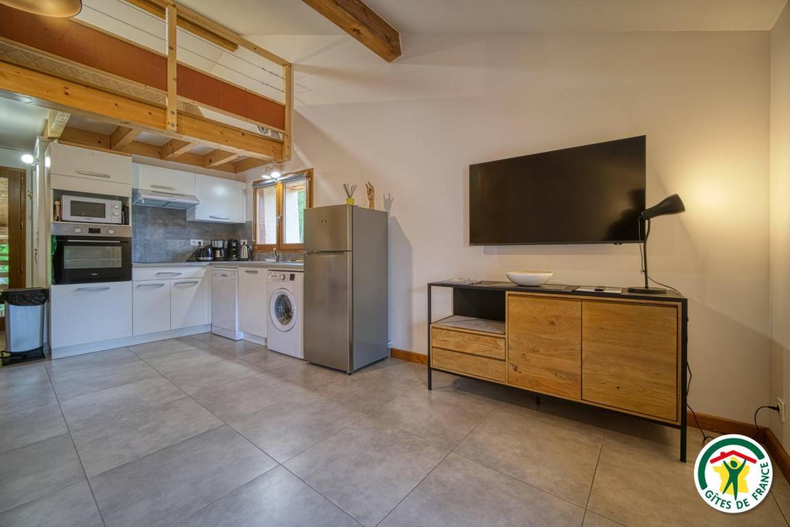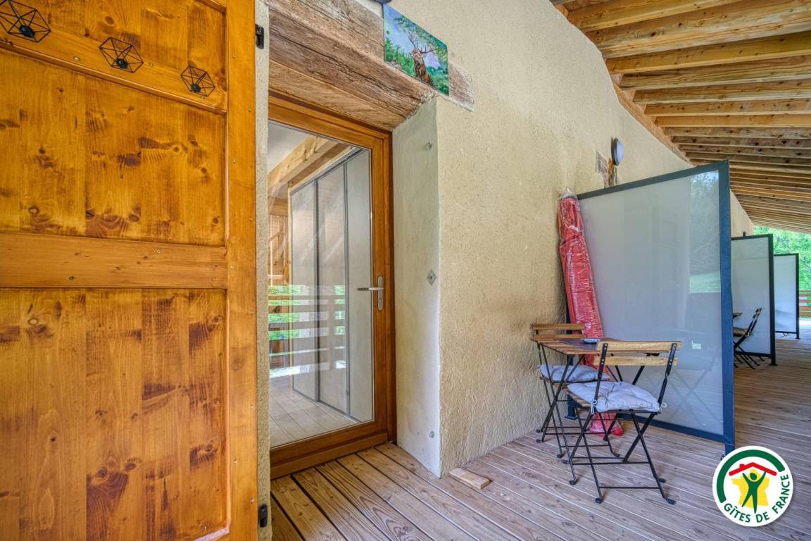 Die Gîte Cerf grenzt an die Gîte Chevreuil. Sie befindet sich im 1. Stock und ist als Maisonette wie folgt aufgeteilt: Wohnzimmer im 1. Stock einschließlich Küche/Wohnzimmer/Salon mit Schlafsofa für 2 Personen, Duschraum, separates WC. 2. Stock: Dachgeschoss-Mezzanin für 3 Schlafplätze (1x160x200, 1x80x190 als Zusatzbett verfügbar). Zu Ihrer alleinigen Nutzung: 8 m² großer Balkon in Südlage mit freier Aussicht. Zur gemeinsamen Nutzung mit den 3 Gîtes: Parkplatz, Feuerstelle, Ruheraum und Wellnessraum mit Spa für 2 Personen und Sauna/Hammam – Sie können zwischen einer traditionellen Sauna mit trockener Hitze oder einem sanften Dampfbad wählen. Wir wohnen 2 Autominuten entfernt (950 m) und teilen unsere Ortskenntnisse gerne mit Ihnen. Die Zufahrt endet nach 500 m unbefestigter Straße. Zum Wohle Ihrer Tiere und aller anderen verlassen wir uns auf die Verantwortung jedes Einzelnen. Bitte beachten Sie: Das Gelände ist nicht eingezäunt!