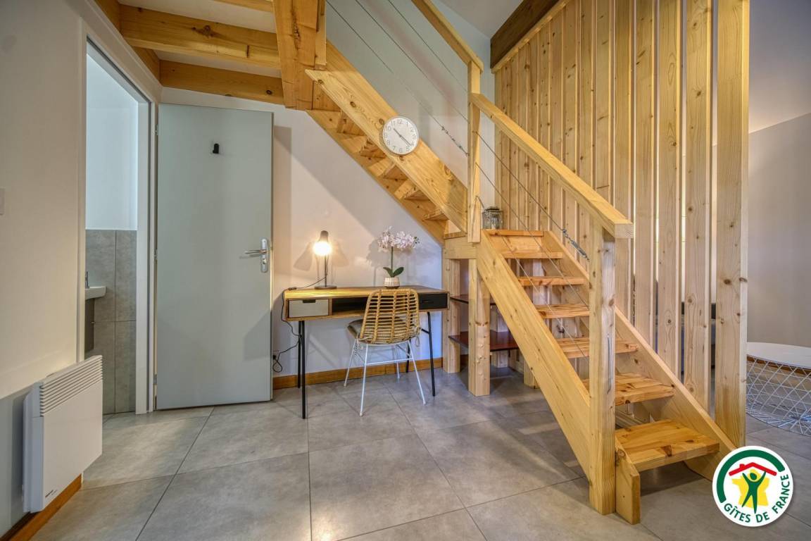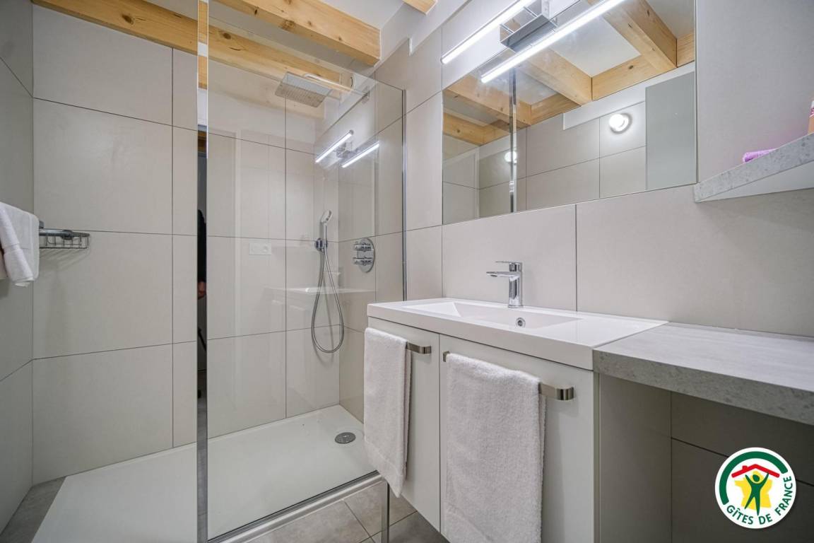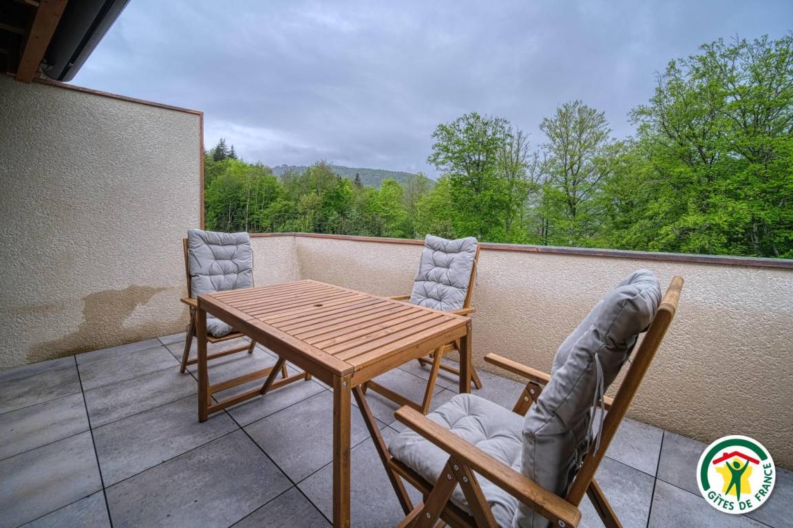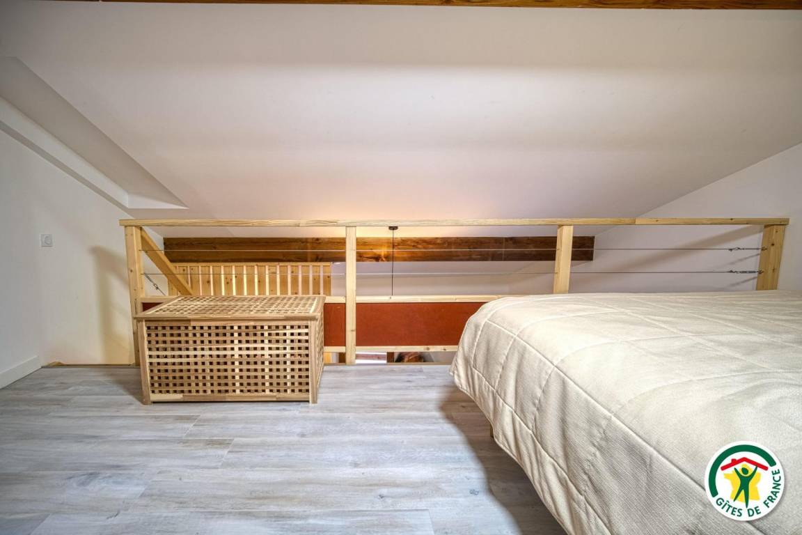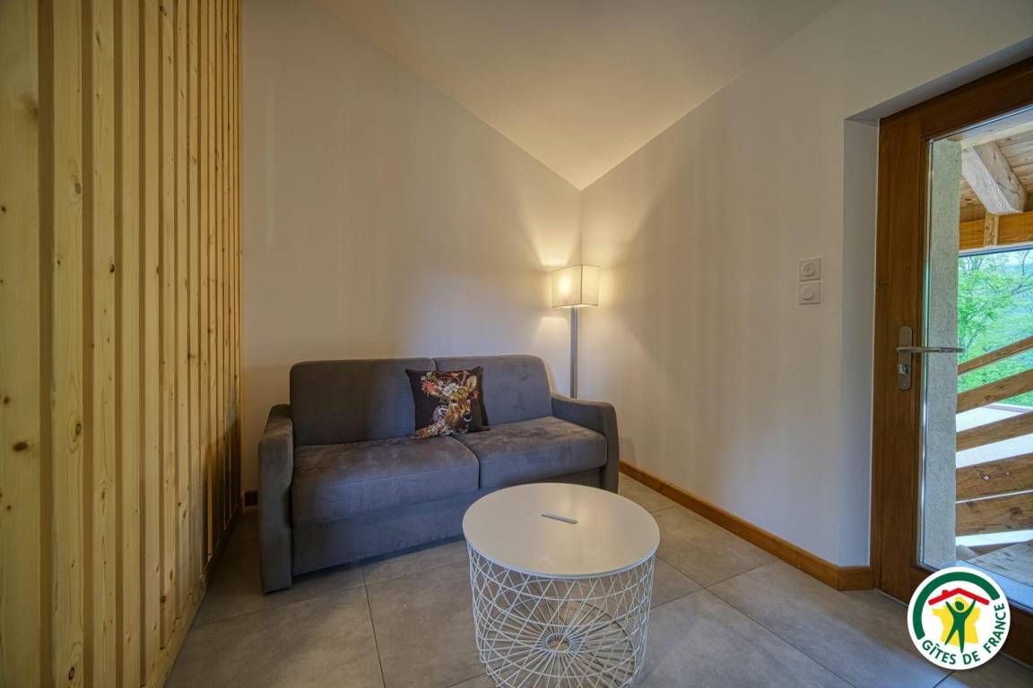 Die Gîte Biche grenzt an die Gîte Chamois. Sie befindet sich im 1. Stock und ist als Maisonette-Wohnung angelegt: 1. Ebene, Wohnzimmer 25 m² mit Schlafsofa für 2 Personen, Duschraum, separates WC. 2. Ebene: Dachgeschoss-Mezzanin für 3 Personen (1x160x200 und 1x80x200 als Zusatzbett verfügbar). Zu Ihrer alleinigen Nutzung: Balkon 16 m², Südwestausrichtung mit freier Aussicht. Zur gemeinsamen Nutzung mit den 3 Gîtes: Parkplatz, Feuerstelle, Ruheraum (Spiele, Lesen, Kamin) und Wellnessraum mit Spa für 2 Personen und Sauna/Hammam, Sie können zwischen einer traditionellen Sauna mit trockener Hitze oder einem sanften Dampfbad wählen. Wir wohnen 2 Autominuten entfernt (950 m) und teilen unsere Ortskenntnisse gerne mit Ihnen. Die Zufahrt zu den Gîtes endet nach 500 m unbefestigter Straße. Zum Wohle Ihrer Tiere und aller anderen setzen wir auf die Verantwortung aller. Bitte beachten Sie: Das Gelände ist nicht eingezäunt! Der Zutritt zum Wellnessbereich ist für Personen unter 18 Jahren verboten.