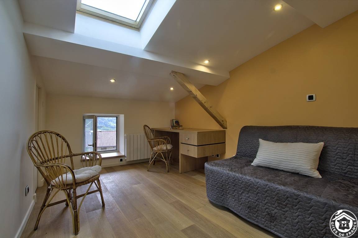 Im Obergeschoss garantieren Ihnen ein helles und einladendes drittes Schlafzimmer mit zwei 90*190-Betten sowie ein Ruhebereich mit einem Schlafsofa einen angenehmen Aufenthalt. Für Ihren Komfort sind die Betten bei Ihrer Ankunft bezogen und Handtücher werden bereitgestellt. Die Nebenkosten sind im Mietpreis enthalten.