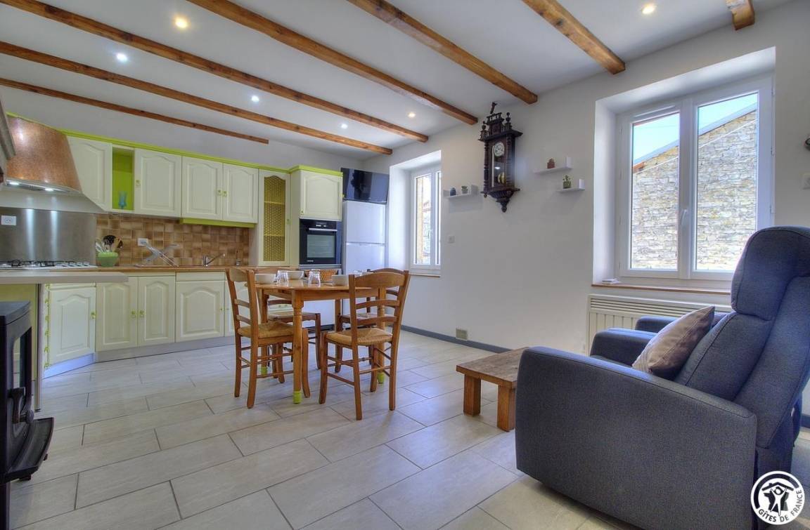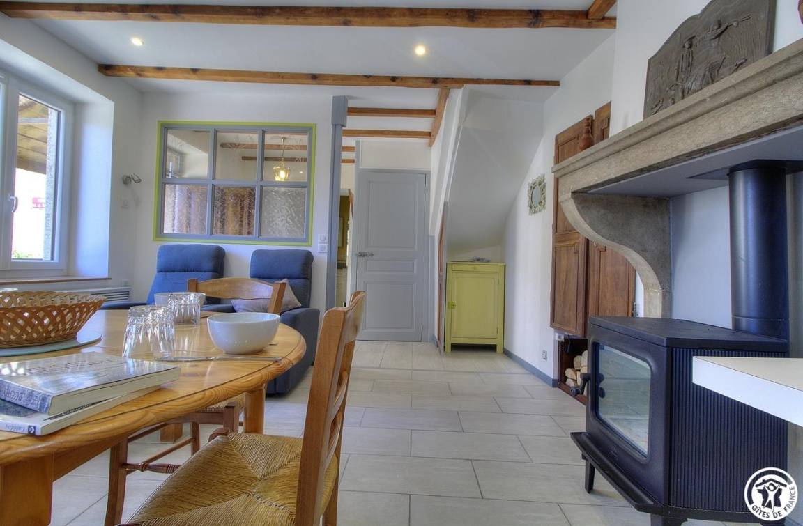 Dieses authentische Ferienhaus im Bugey-Stil wurde komplett renoviert. Die warme, schlichte und dennoch elegante Einrichtung ist perfekt, um gemütliche Stunden am Kaminofen oder inmitten der Natur zu verbringen.