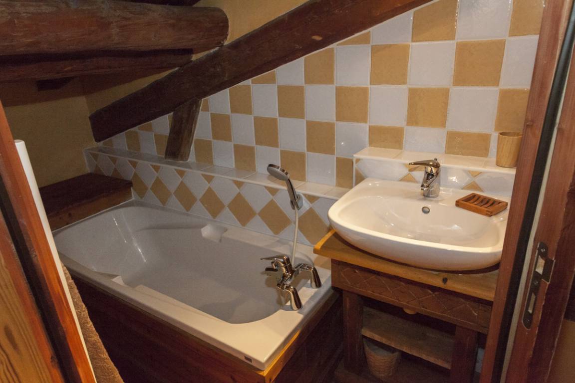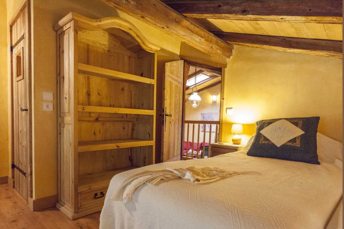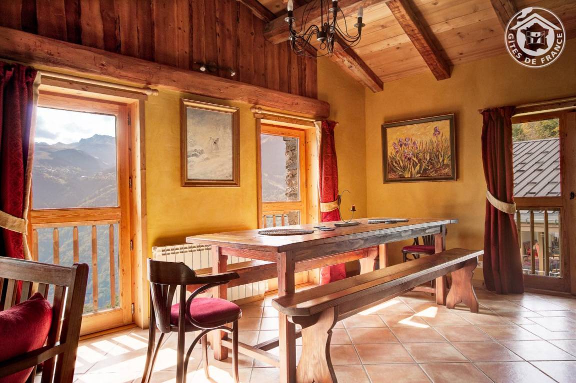 Ferienwohnung im Haus des Eigentümers. 1. + 2. Stock: Wohnzimmer-Küche, Lounge-Bereich, WLAN, 5 Schlafzimmer (1 Doppelbett 140 x 190 cm / 8 Einzelbetten 90 x 200 cm, die zu Doppelbetten kombiniert werden können) einschließlich 4 Badezimmer (Duschen) und 1 privates Badezimmer (Badewanne). Terrasse + ebener Boden. Skifahren Champagny-la Plagne 11 km, Courchevel le Praz-3 Vallées 15 km. Gewässer 6 km. Wohnfläche 143 m² Dachgeschoss inklusive. Bozel-Courchevel-Shuttle.