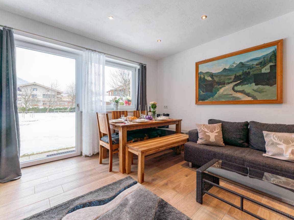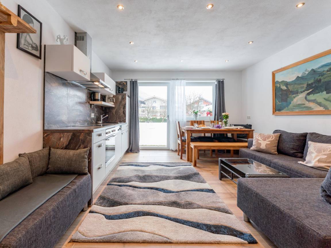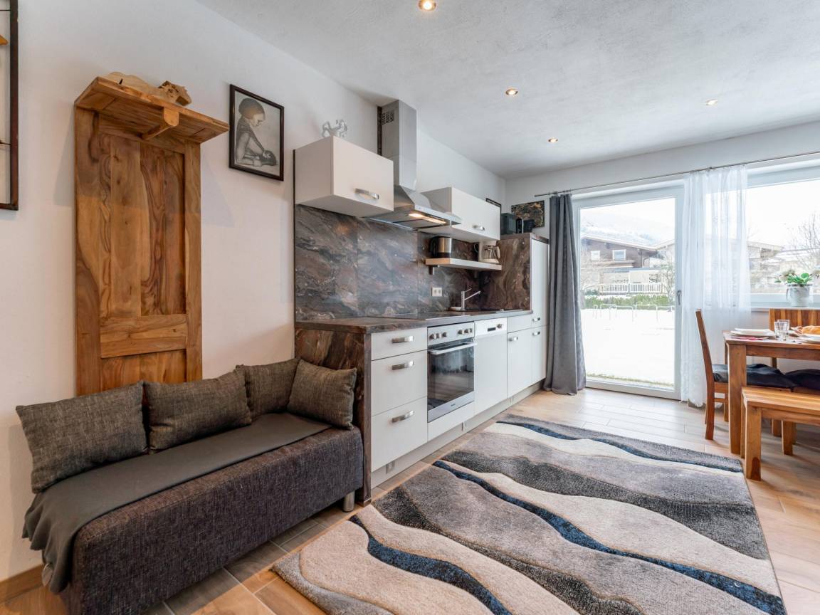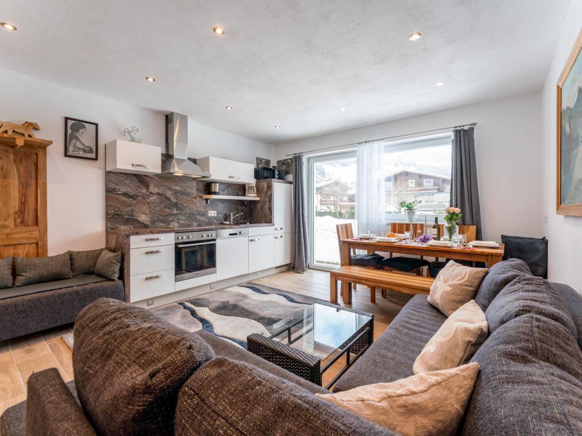 Hausbeschreibung : Gemütliche Ferienwohnung - nur 800 m zum Skilift. In diesem Apartment im Parterre finden bis zu 8 Personen platz. Drei Schlafzimmer mit TV, ein Badezimmer sowie ein heller Wohn- und Essbereich mit offener Küche bieten viel Komfort. Der Garten lädt zum Entspannen nach Wander-, Bike- oder Skitagen ein. Perfekt für Familien und Freunde, die Ruhe und Natur genießen möchten. Bramberg punktet mit direktem Zugang zur Wildkogel-Arena im Winter und traumhaften Wanderwegen im Sommer