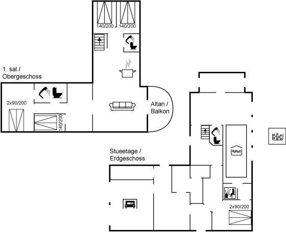 SchlafverhältnisseDie Schlafplätze verteilen sich auf 5 Schlafräume. 10 Schlafplätze in Doppelbetten. Ferner stehen 2 Kinderbetten zur Verfügung.