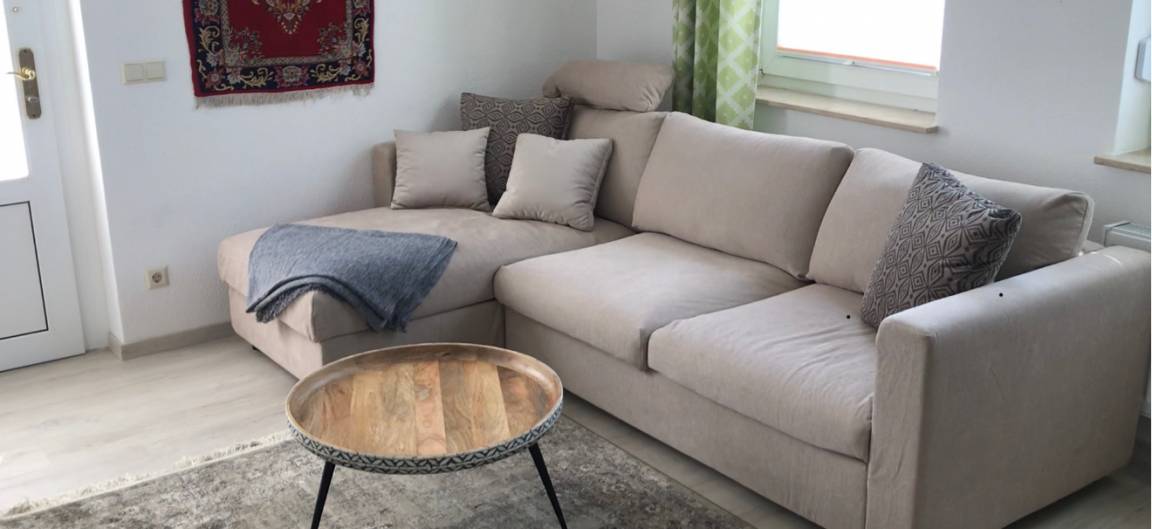 Das geschmackvoll, etwas oriental, eingerichtete Wohnzimmer ist das Herzstück unserer Wohnung, denn auf dem gemütlichen Sofa können Sie sich wie Zuhause fühlen!
