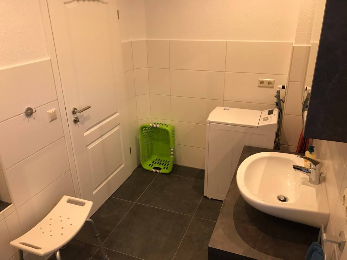 Im neuen modernen Bad wartet eine große Regendusche auf Sie, sowie jede Menge frische Handtücher.