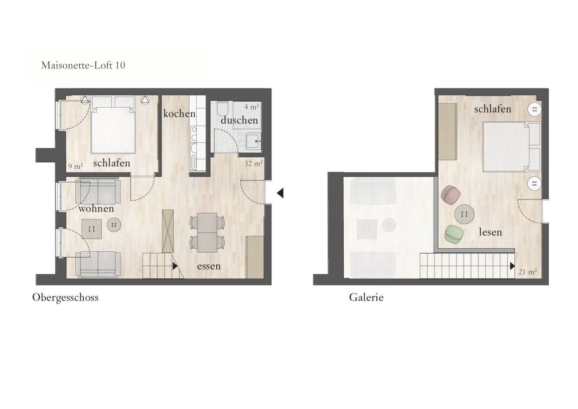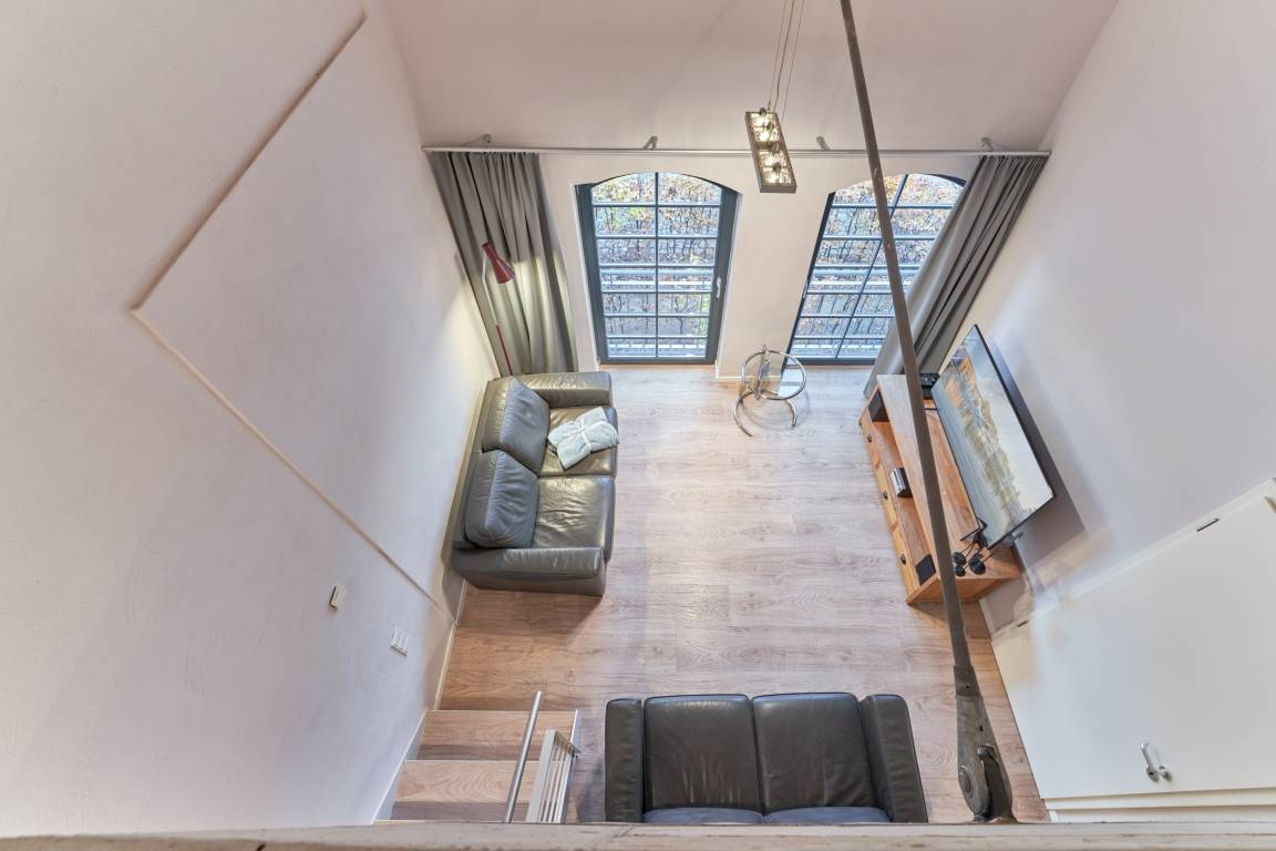 Die Maisonette-Ferienwohnung liegt im Obergeschoss der ehemaligen Färberei der Kammgarnspinnerei und zeichnet sich durch ihre geräumige Raumaufteilung (66m²) aus. Die gut geschnittene, viel Platz bietende und komfortabel ausgestattete Loft-Ferienwohnung ist für 4 Personen geeignet. Die Bereitstellung von Kinderreisebetten und Hochstühlen ist nach Vorbestellung jederzeit möglich.