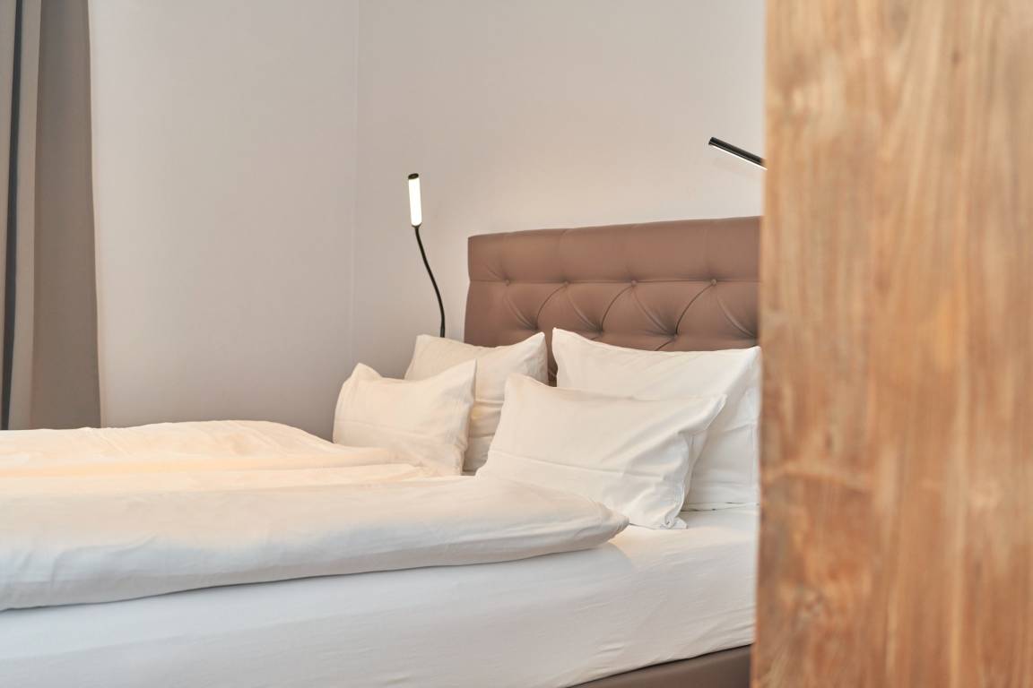 Die beiden sehr großen, nebeneinander liegenden Schlafzimmer sind jeweils mit einem überlangen (2,10 m), komfortablen Boxspringbett versehen.