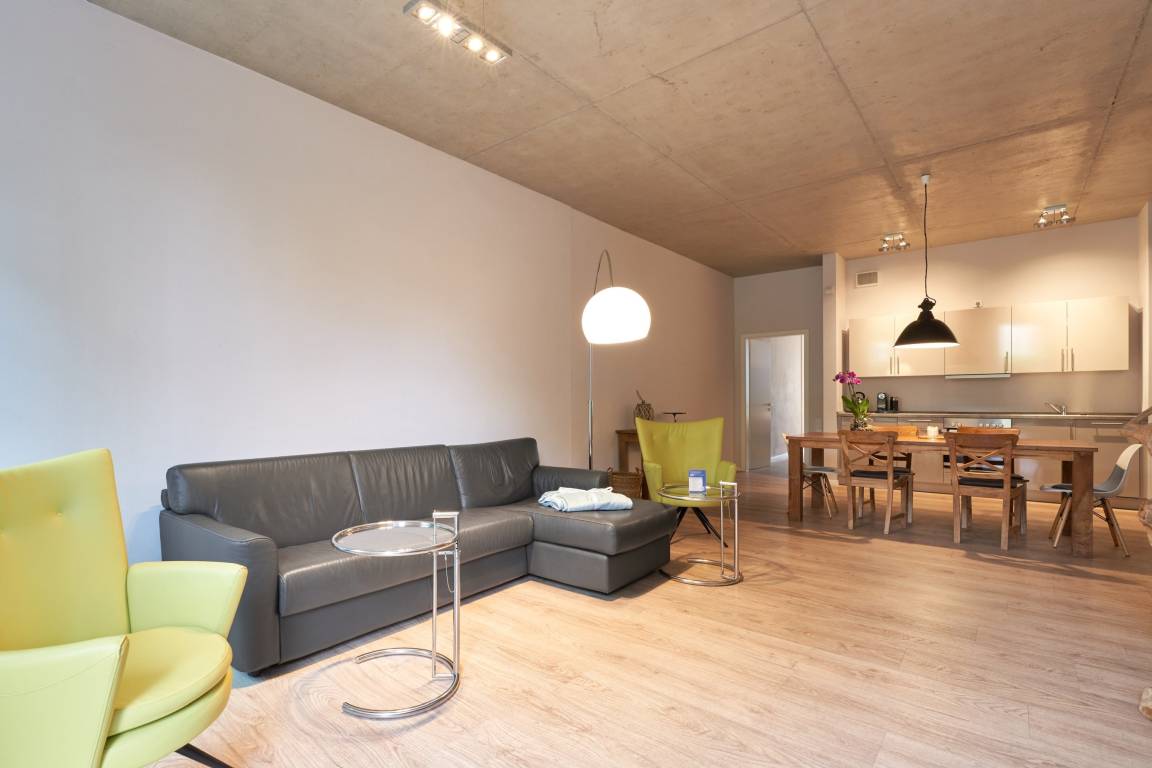 Im Wohnbereich laden die italienischen Sofas und Sessel zum Relaxen ein. Der große Flachbildschirm mit Kabelanschluss und angeschlossenem Blue-Ray-Player sorgen für vielfältige Unterhaltung. Die Stereoanlage bietet über den Bluetooth-Zugang auch die Möglichkeit Ihre eigene Musik zu genießen. In der Wohnung ist selbstverständlich auch WLAN vorhanden.