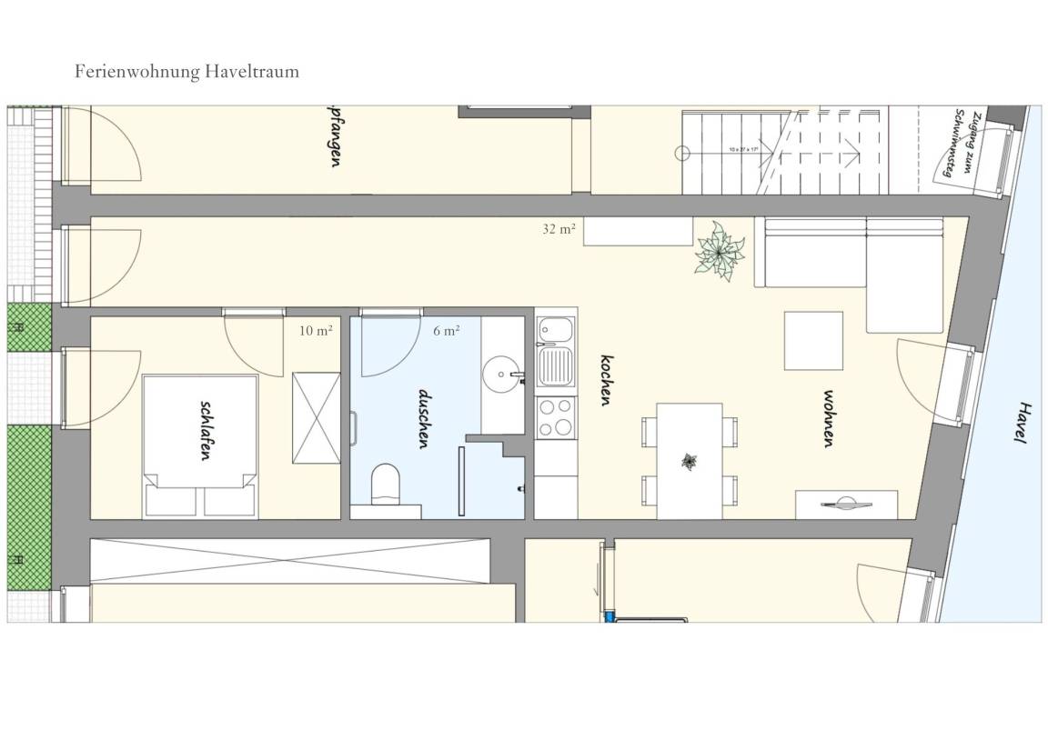Auf dem Gelände der ehemaligen Kammgarnspinnerei, in einem denkmalgeschützten Gebäude, befindet sich unsere exklusive, individuell eingerichtete Ferienwohnung „Haveltraum".