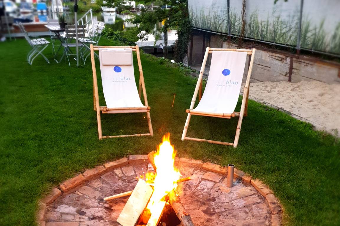 Zu jeder Ferienwohnung gehört die große Liege-/Spielwiese am Havelufer mit direktem Zugang zur hauseigenen Schwimm-/Badesteganlage, welche mit Badeleiter und einer Freibordhöhe von 20 cm errichtet wurde. Das ermöglicht Ihnen ein bequemes Ein- und Aussteigen aus ihrem Kanu bzw. Ruderboot. Weiterhin ist dort direkt neben dem übergroßen Natursteintisch (ca. 5 x 1,20m) der Grillplatz.