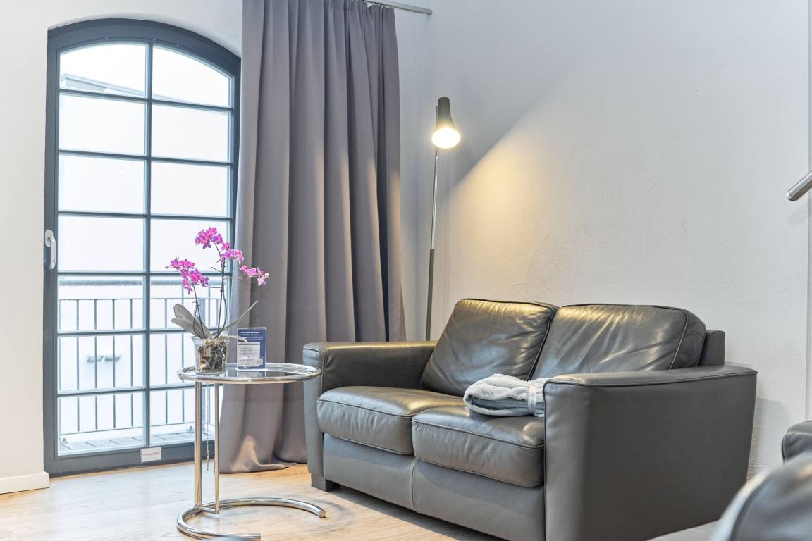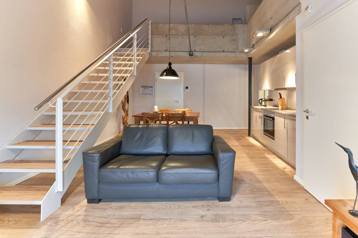Die Maisonette-Ferienwohnung liegt im Obergeschoss der ehemaligen Färberei der Kammgarnspinnerei und zeichnet sich durch ihre geräumige Raumaufteilung (60m²) aus. Die gut geschnittene, viel Platz bietende und komfortabel ausgestattete Loft-Ferienwohnung ist für 4 Personen geeignet. Die Bereitstellung von Kinderreisebetten und Hochstühlen ist nach Vorbestellung jederzeit möglich.