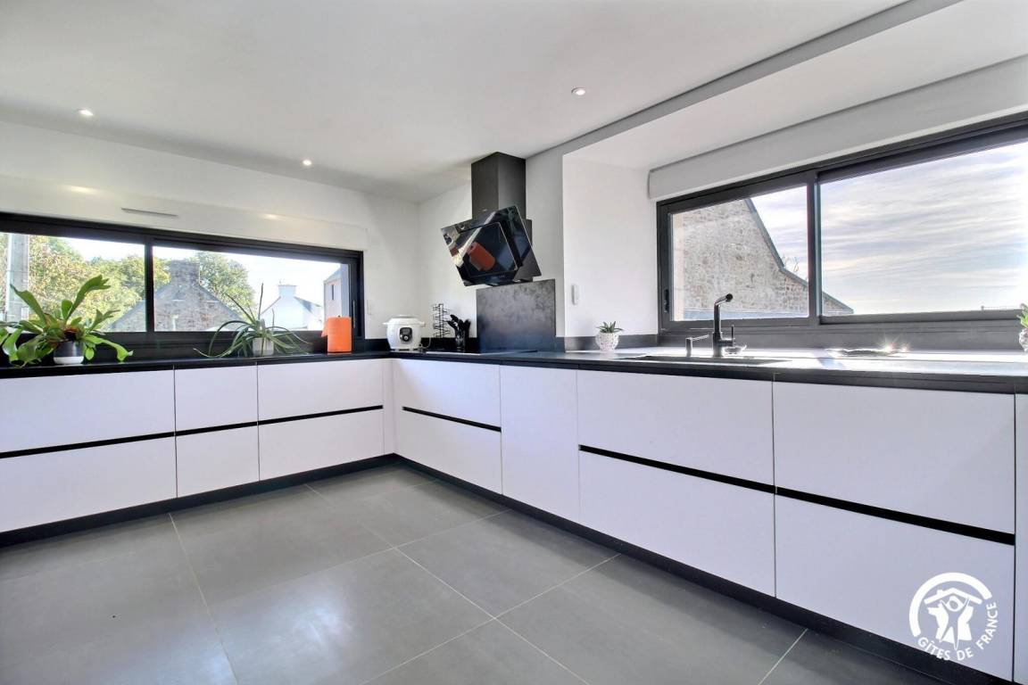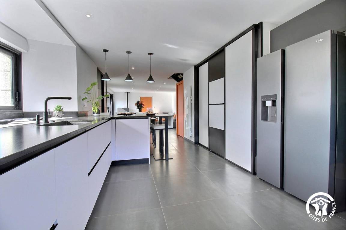 – Voll ausgestattete Küche, offen zum Wohnzimmer und Aufenthaltsraum mit Holzofen.