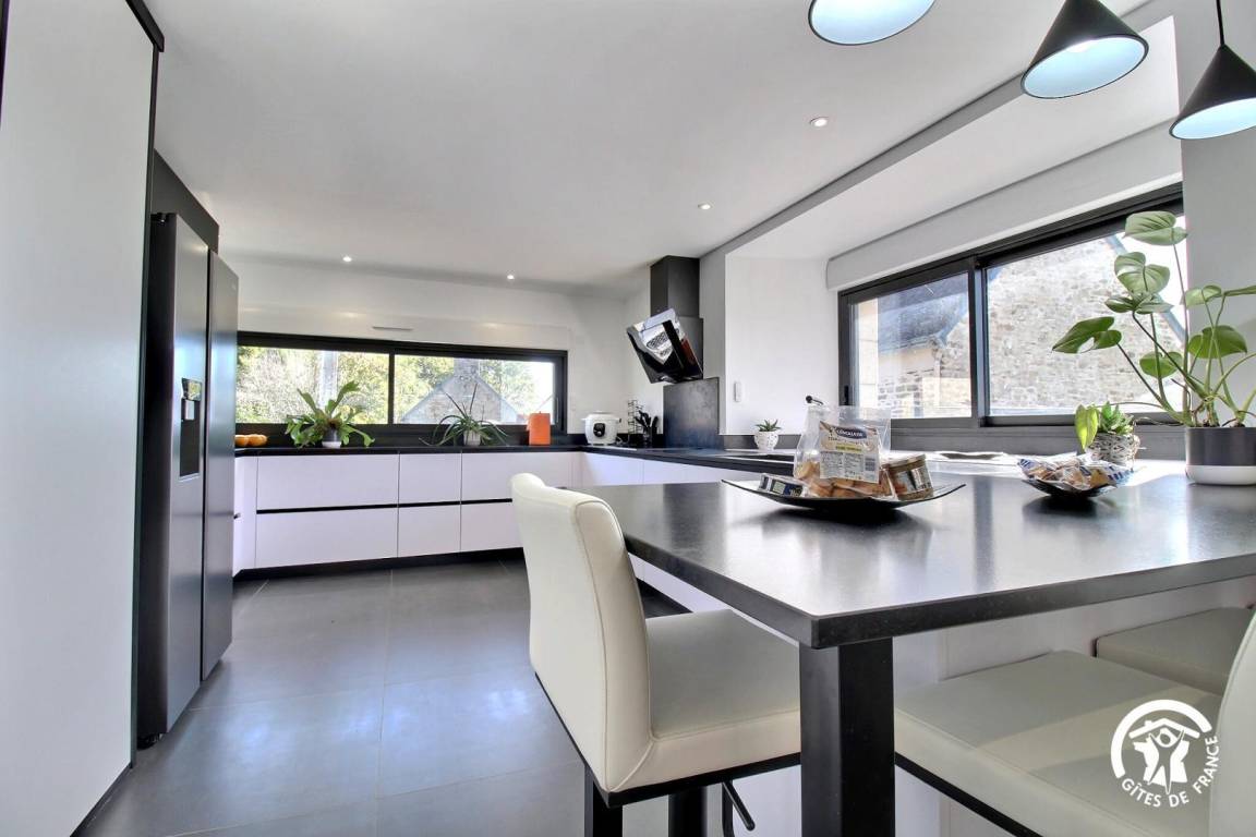 Eingebettet in einem ruhigen Weiler in Brandérion, im Herzen der bretonischen Landschaft, lädt dieses Ferienhaus zum Entspannen und Erholen ein. Umgeben von viel Grün und lichtdurchflutet bietet es den idealen Rahmen, um mit Familie oder Freunden neue Energie zu tanken. Die warme und elegante Atmosphäre verspricht gesellige Momente, vom Frühstück auf der Terrasse bis zum abendlichen Verweilen im Whirlpool.