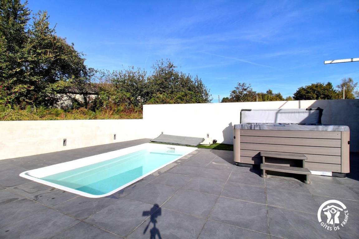 – Privater 400 m² großer Garten mit beheiztem Außenpool mit Gegenstromanlage (4,25 m x 2,15 m) und privatem Whirlpool für 5 bis 6 Personen.
