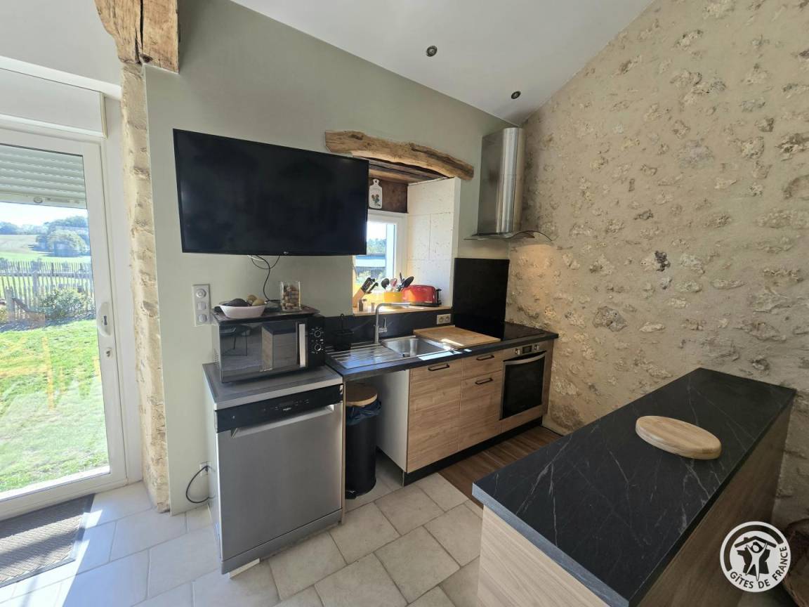 „We stayed for 2 weeks in February. on arrival the sat nav takes you to the owners mothers house next door, you need to look for the long white fence by the road with a very small sign "Gite de France". this is the entrance to the gites. The gite was lovely, large open space with 2 good size double bedrooms. There is also a mezzanine which can be used for childrens play area or extra sleeping. very modern interior, only one small sofa which we thought was difficult if more than 2 people staying, could do with 2 sofa's. The kitchen is a good space, but the owner did not leave any washing up soap, and the hand soap was empty, the sponge was dirty, so our first trip to carrefour was to replace those items. we were staying for two weeks, but we were only given 1 towel each? This seems a bit limited. Having said all of this, I would definitely stay here again, and would still recommend it to anyone wanting a quiet space only 10 minutes from Brantome centre and the carrefour shopping. The owners mum did allow us to use their washing machine when I asked, and also gave me 2 more towels when I asked.“