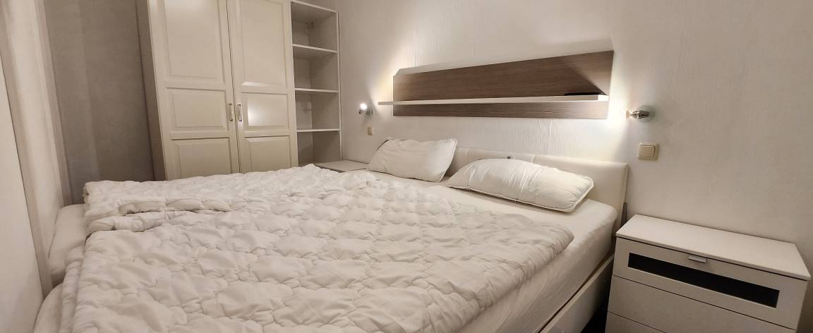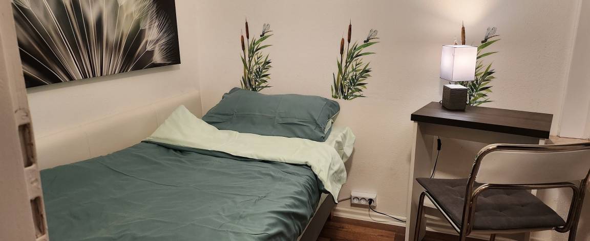 Komplett modernisierte Nichtraucher- Ferienwohnung mit einem Schlafraum mit Doppelbett (1,80 x 2,00 m) und TV. Im zweiten Schlafraum steht ein Einzelbett (0,90 x 2,00 m) mit einem kleinen Tisch z. B für Laptop.