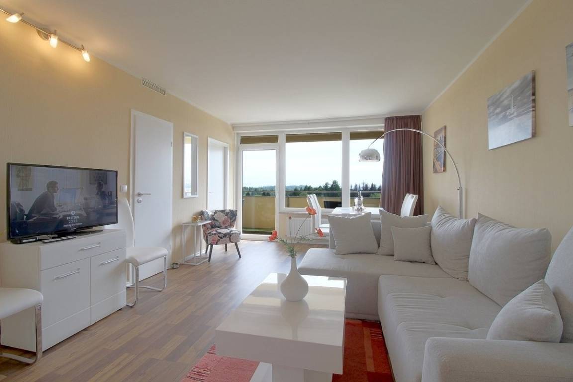 In der 4. Etage liegt diese Ferienwohnung mit 2 Schlafzimmern. Kostenlose Schwimmbad Nutzung im Haus, Sauna gegen Gebühr, Minigolf, Rodelbahn und Spielplatz direkt am Haus.