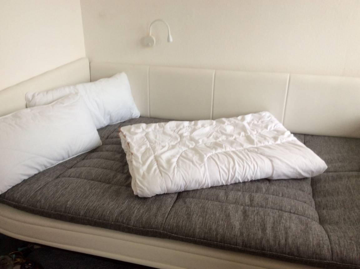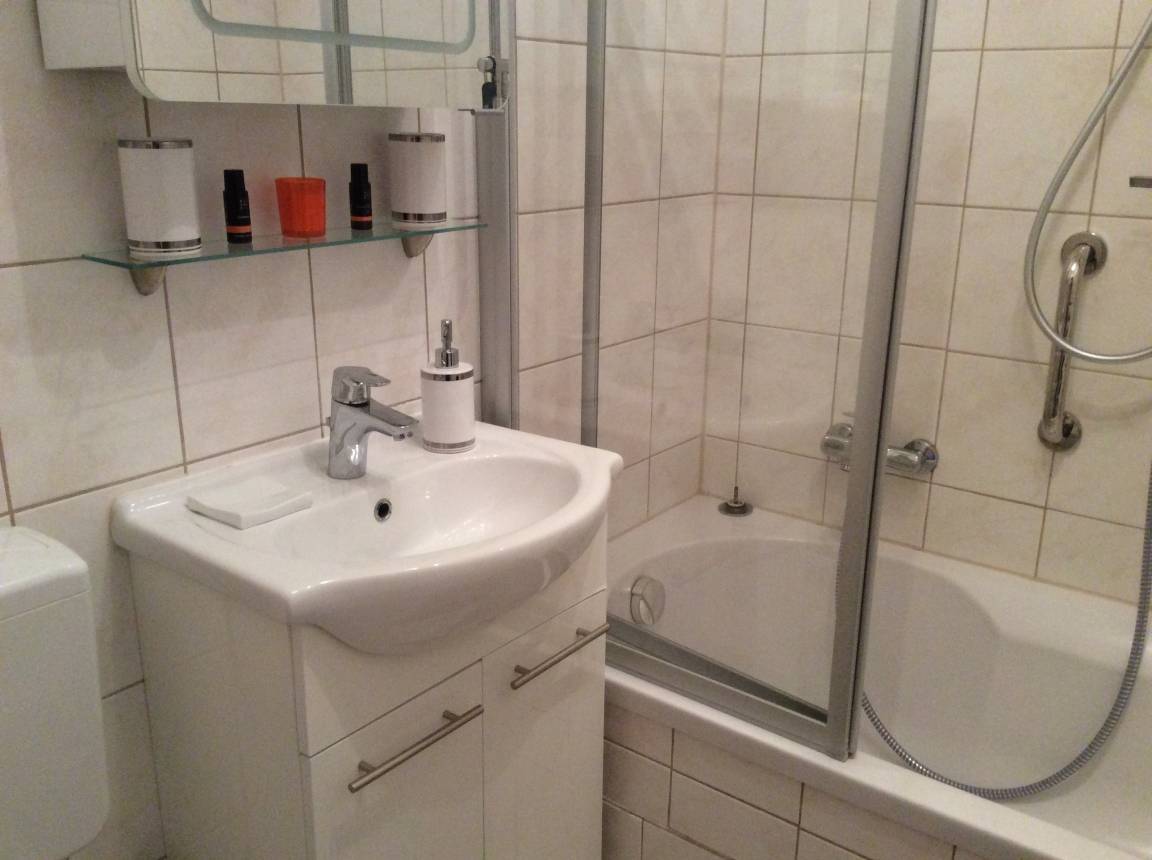 Das Gästeschlafzimmer mit großem Fenster verfügt über eine bequeme Schlafcouch mit ca. 1,3 m Breite. Das schicke, neue moderne Wannenbad mit Echtglasduschabtrennung, Regendusche und Handtuchheizung komplettiert die Ferienwohnung. Die ganze Wohnung ist allergikerfreundlich mit hochwertigem Venylfußboden ausgestattet.