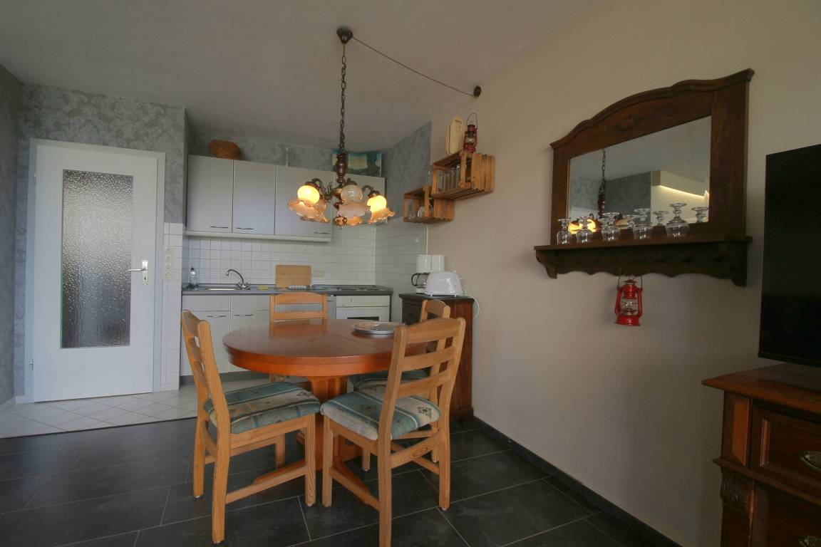 Hell und freundlich eingerichtete Nichtraucher- Ferienwohnung mit einem Schlafraum mit Doppelbett (1,60 x 2,00 m) und Küchenzeile mit Essecke und Wohnraum mit Schlafcouch und großem Fernseher. Der Wohn-und Schlafbereich ist mit Laminatboden ausgestattet. Kostenloses WLAN ist in der wohnung vorhanden