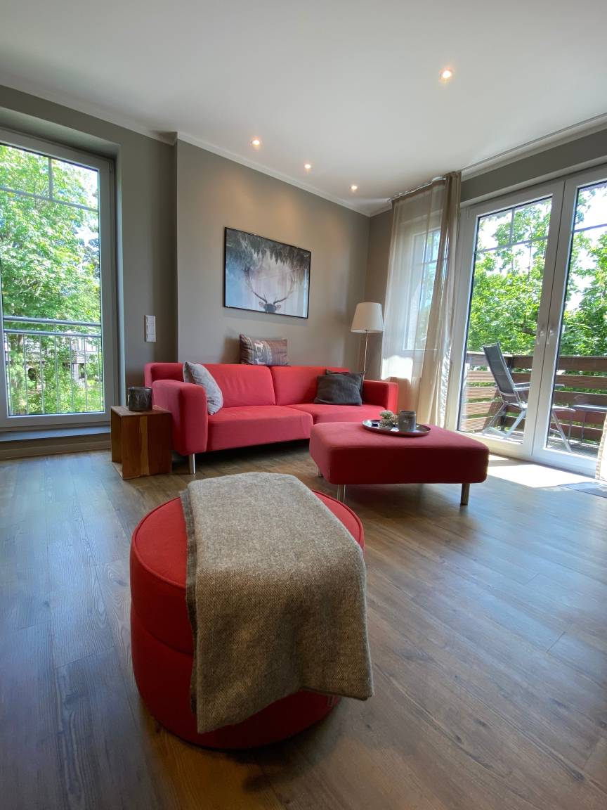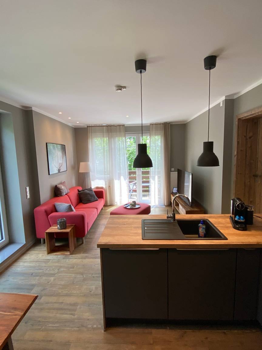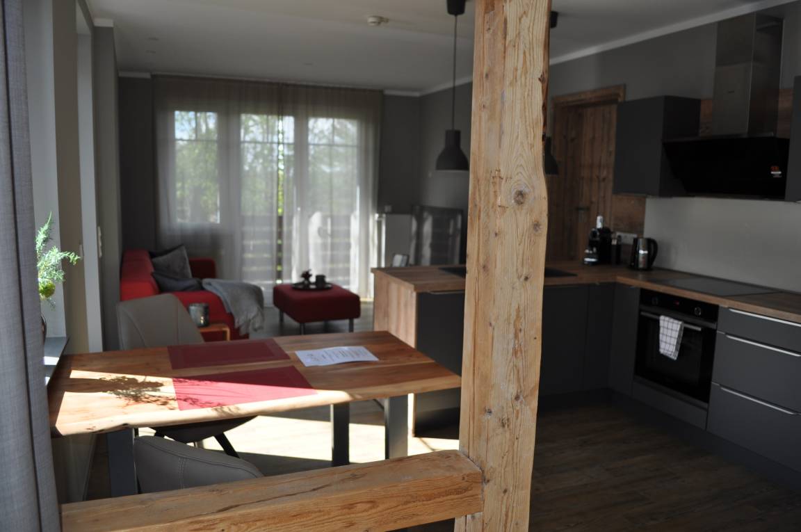 Dieses Luxusloft befindet sich im 1. Obergeschoss, ist für 2 Personen ausgelegt und ca. 54 qm groß. Es verfügt über einen zusammenhängenden Wohn-Essbereich und Schlafzimmer. Das Loft verfügt über ein Bad mit Dusch-Badewannenkombination mit Regendusche. Vom Südostbalkon haben Sie einen Blick in den Garten. Es ist eine hochwertige Küche mit Geschirrspüler, Backofen und Ceran-Kochfeld verbaut. Die Ausstattung der Küche lässt keine Wünsche offen, u. a. finden Sie eine Auswahl an Gewürzen vor. Das Doppelbett verfügt auf der rechten Seite über eine Matratze mit Härtegrad 3 und auf der linken Seite mit Härtegrad 4.