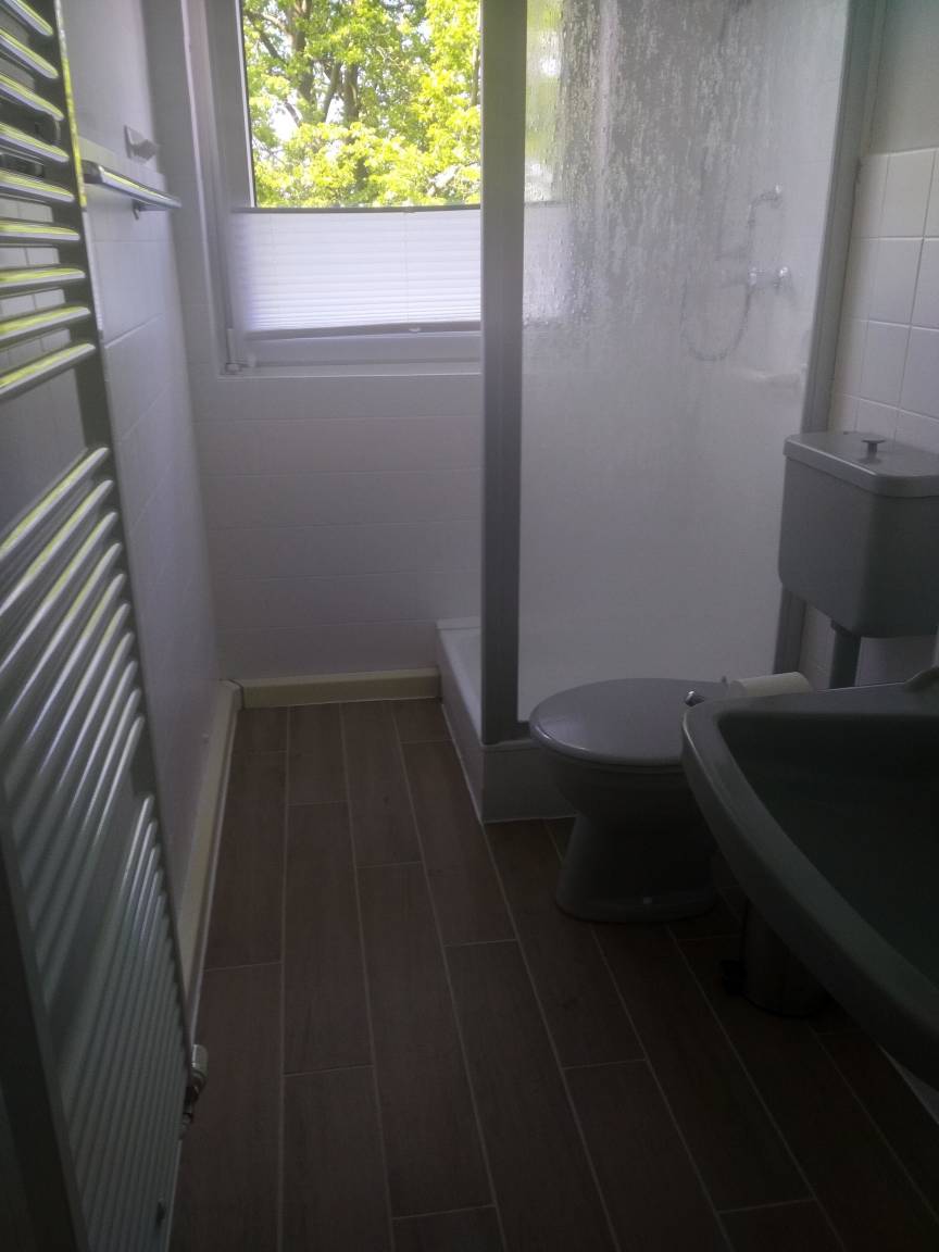Unsere Ferienwohnung bietet Ihnen ein ansprechendes Bad mit Dusche (neuer thermostatgesteuerter Duschkopf) und WC, welches für Sie mit Handtüchern ausgestattet ist.