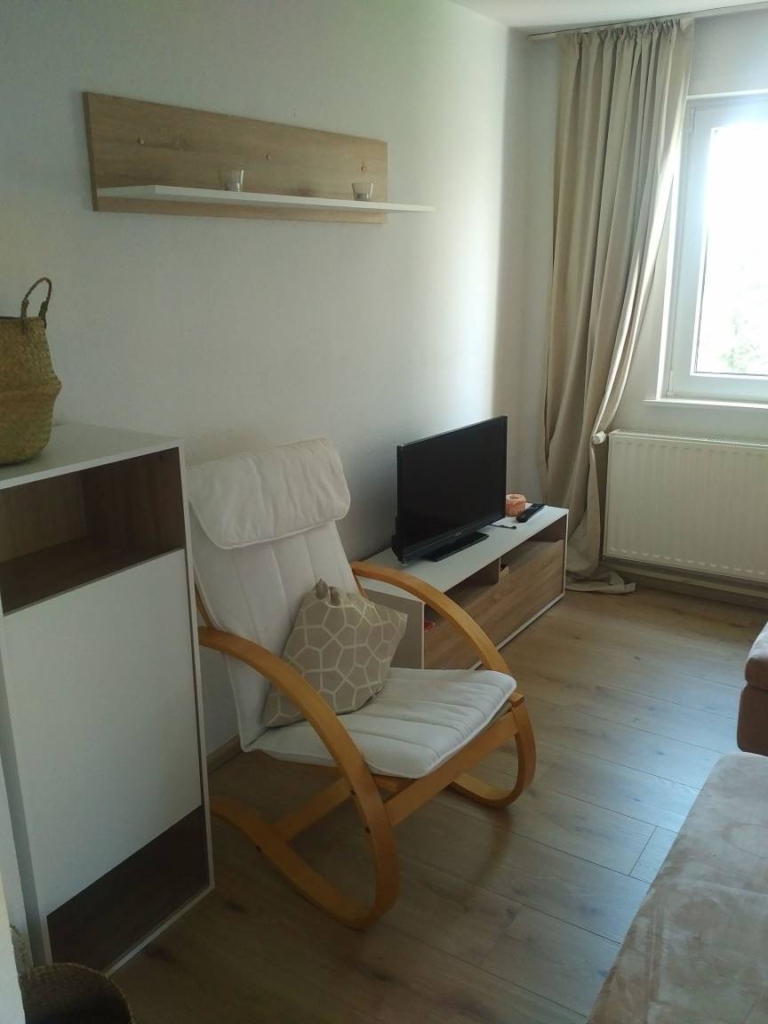 Diese gemütliche Ferienwohnung verfügt über ein Schlafzimmer mit einem Doppelbett und eine Schlafcouch für eine Person im Wohnzimmer und bietet somit bis zu 3 Personen einen Schlafplatz. Kostenloses WLAN ist überall verfügbar.