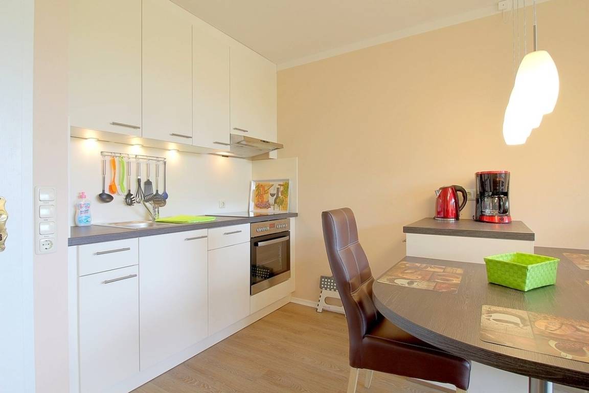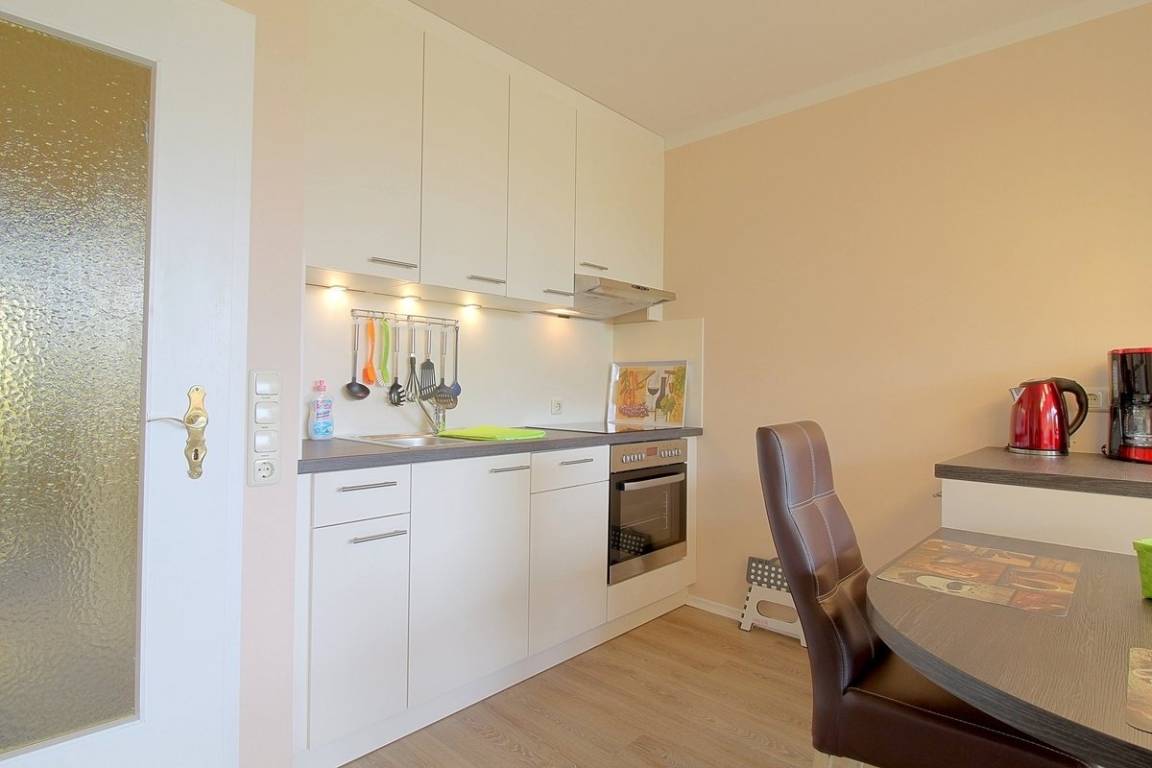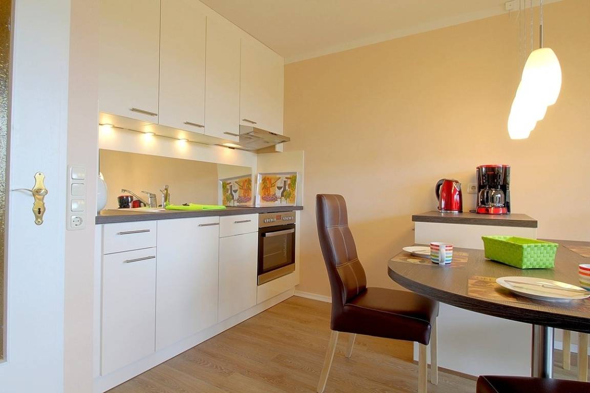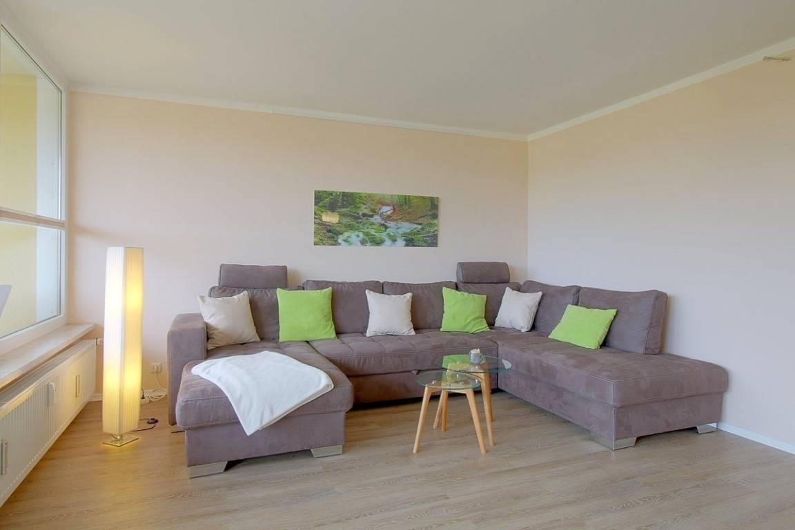Komplett renovierte Nichtraucher-Ferienwohnung mit 1 Schlafzimmer mit Doppelbett (1,80x2,00m), welches man auch als zwei Einzelbetten stellen kann. Im Wohnzimmer gibt es eine großzügige Wohnlandschaft mit einem Schlafsofa. Die hochwertige Küche mit Geschirrspüler lässt keine Wünsche offen. Duschbad mit barrierefreier Dusche mit Regendusche. Die ganze Wohnung ist allergikerfreundlich mit Vinylbelag ausgestattet. Kostenloses W-Lan im Appartement