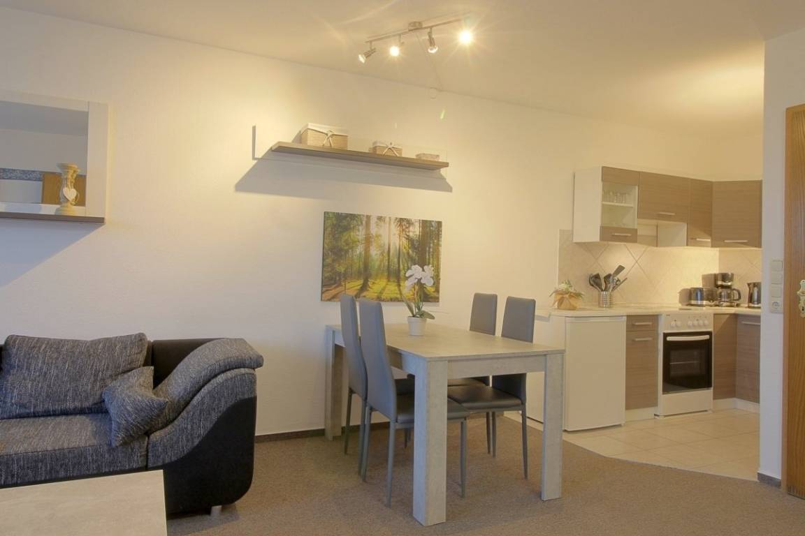 In der 1. Etage liegt diese Ferienwohnung mit 2 Schlafzimmern. Kostenlose Schwimmbad Nutzung im Haus, Sauna gegen Gebühr, Minigolf, Rodelbahn und Spielplatz direkt am Haus.