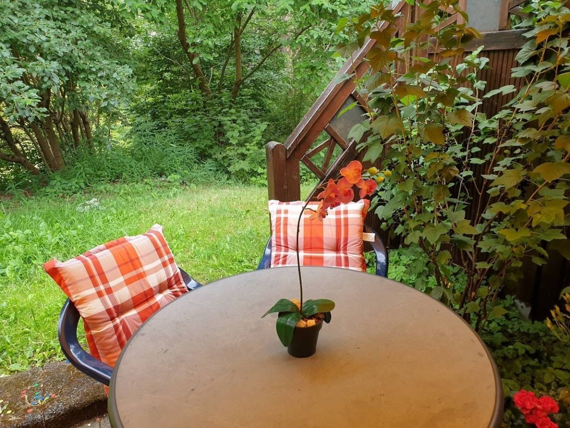 Die Wohnung verfügt über eine geräumige, sonnige Terrasse mit Gartenmöbeln und selbstverständlich kostenloses WLAN